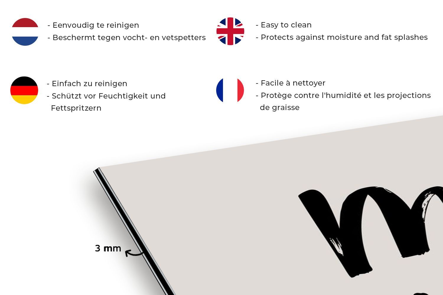 Spritzschutz Küchenrückwand - 70x50 cm Zitat - Taupe - Mamas Küche (Gr. 70x50 cm)