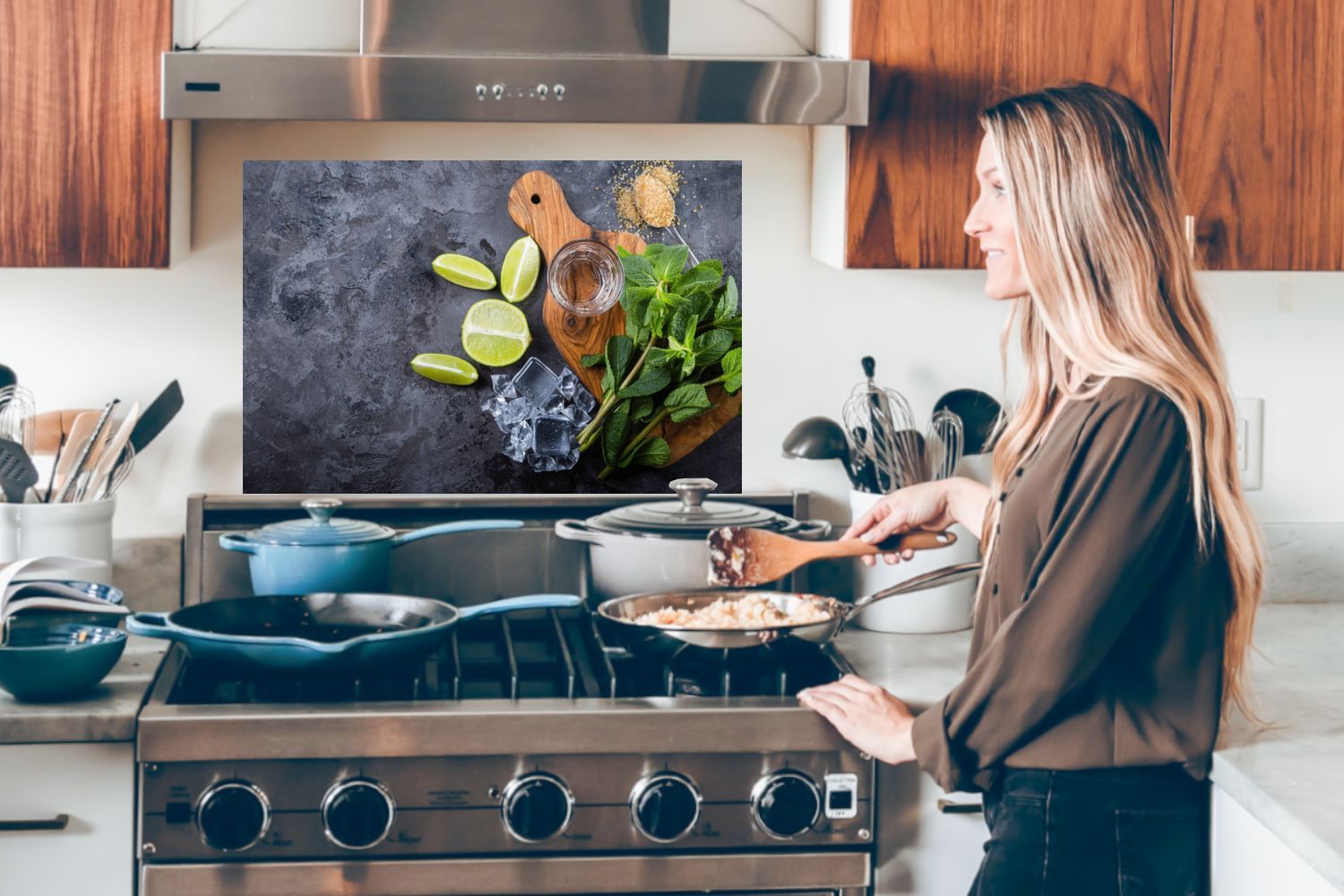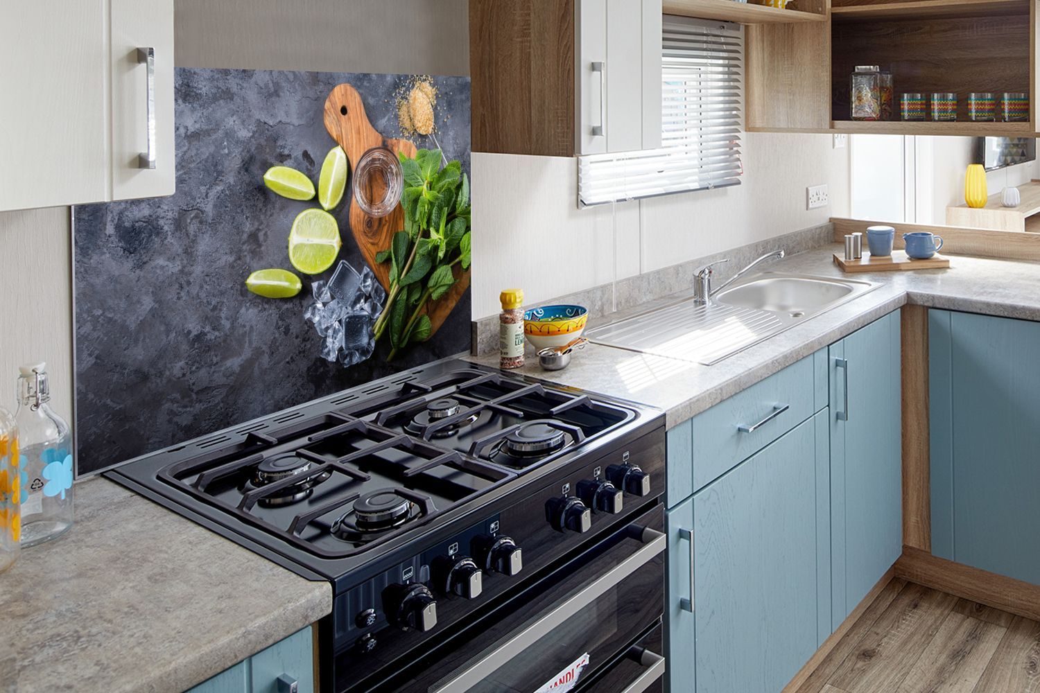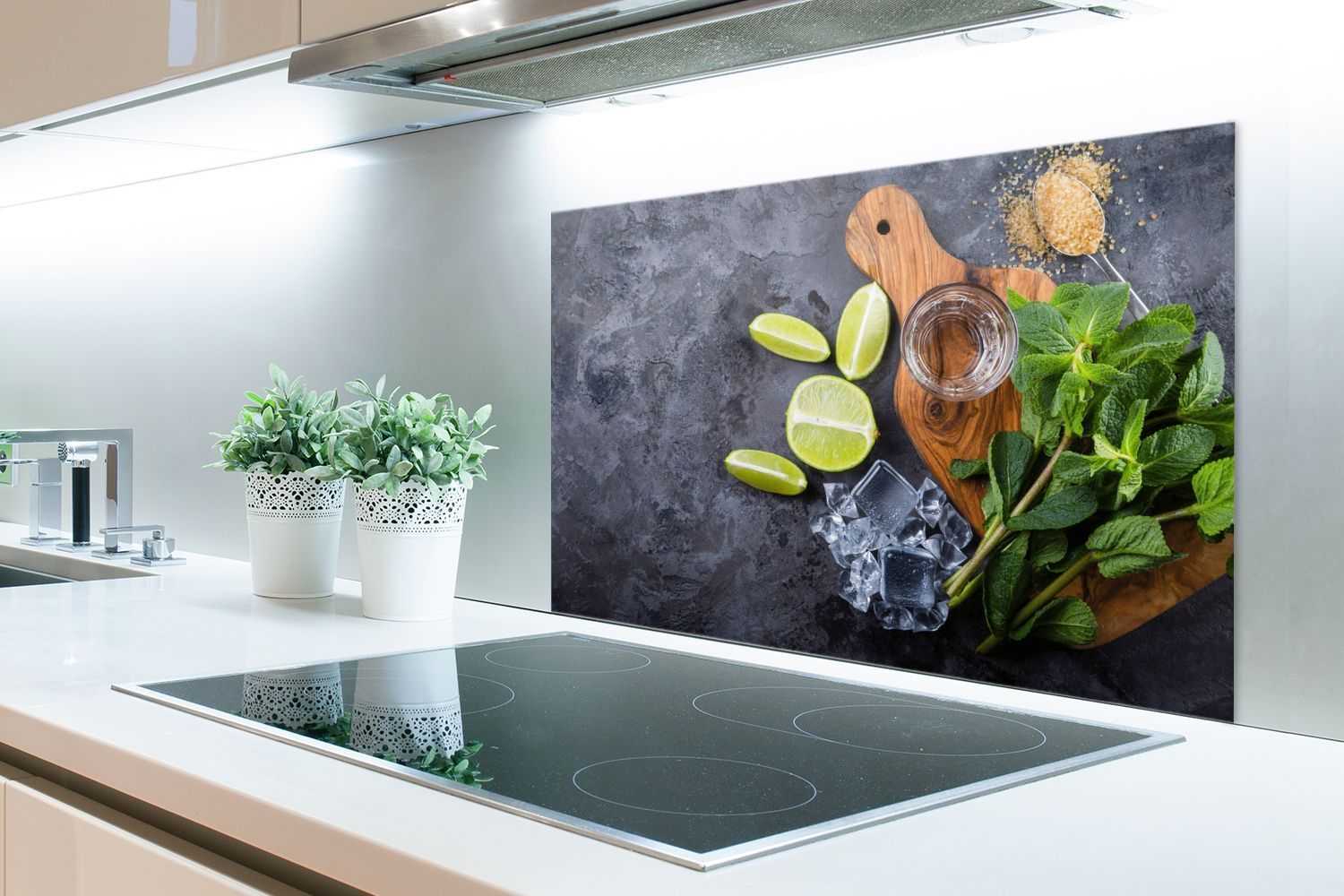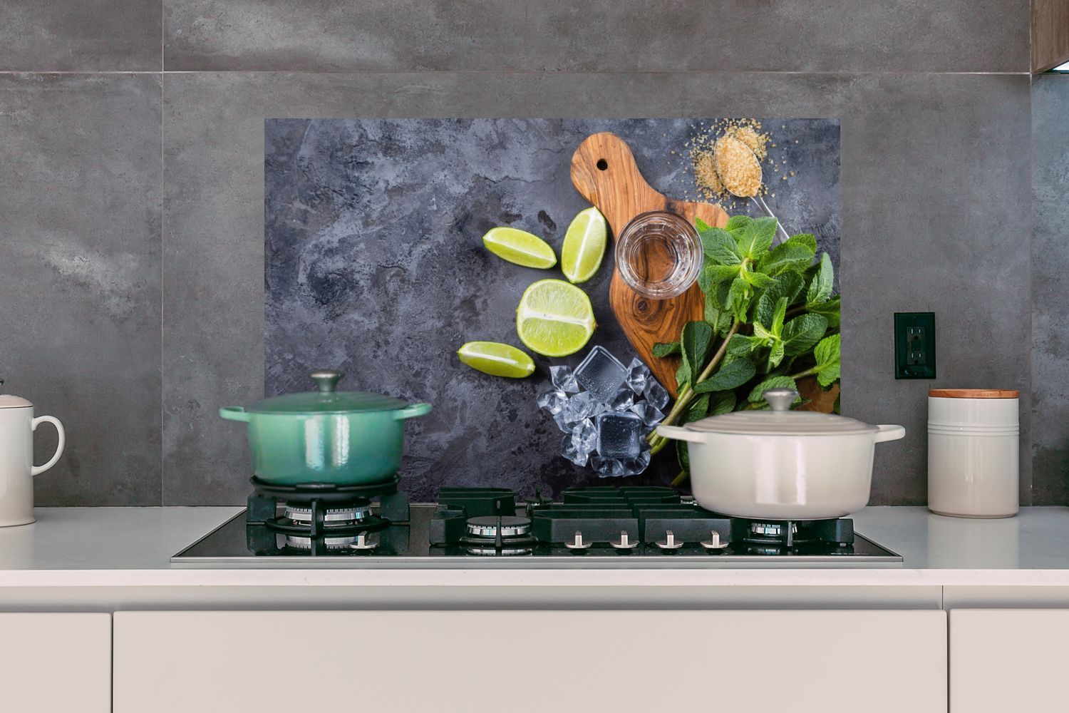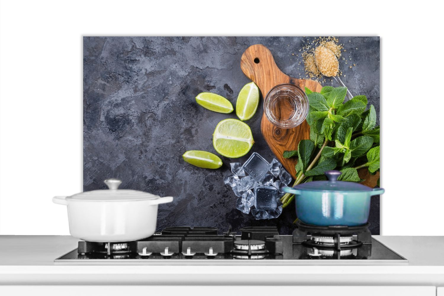 Spritzschutz Küchenrückwand - 80x55 cm Schneidebrett - Glas - Obst - Zitrone