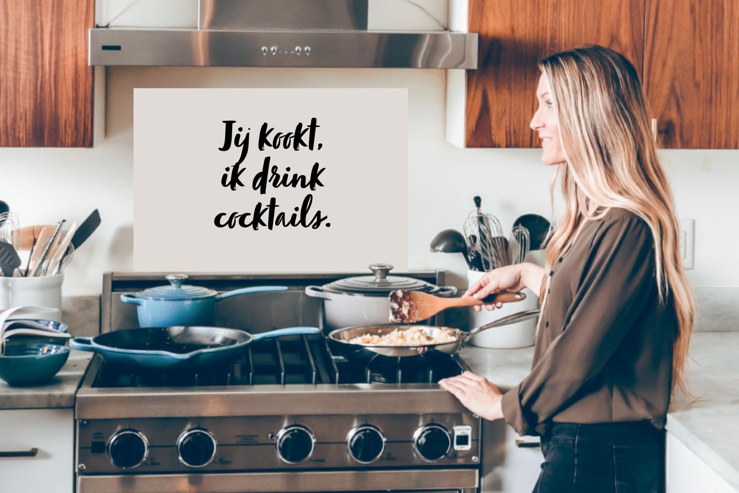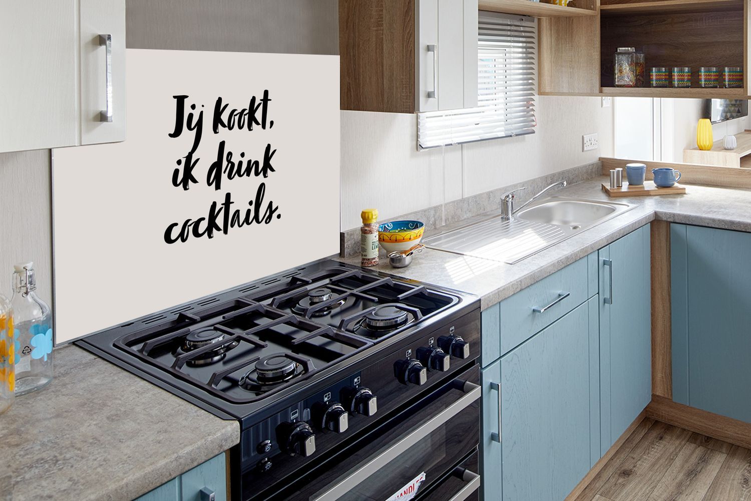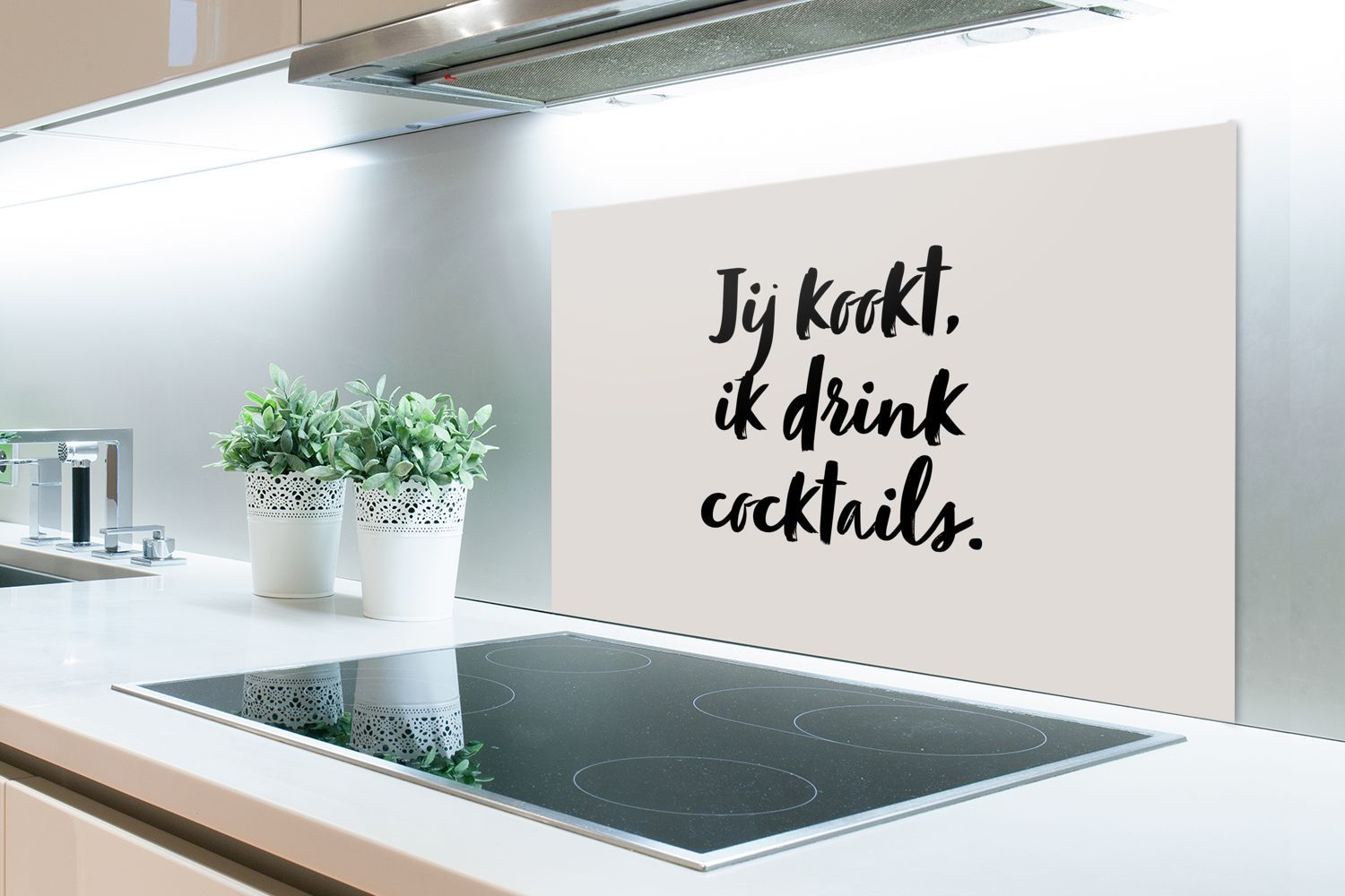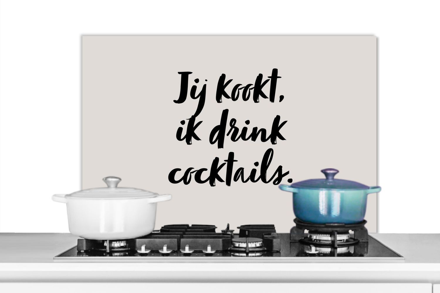Spritzschutz Küchenrückwand - 80x55 cm Taupe - Zitat - Du kochst, ich trinke Cocktail