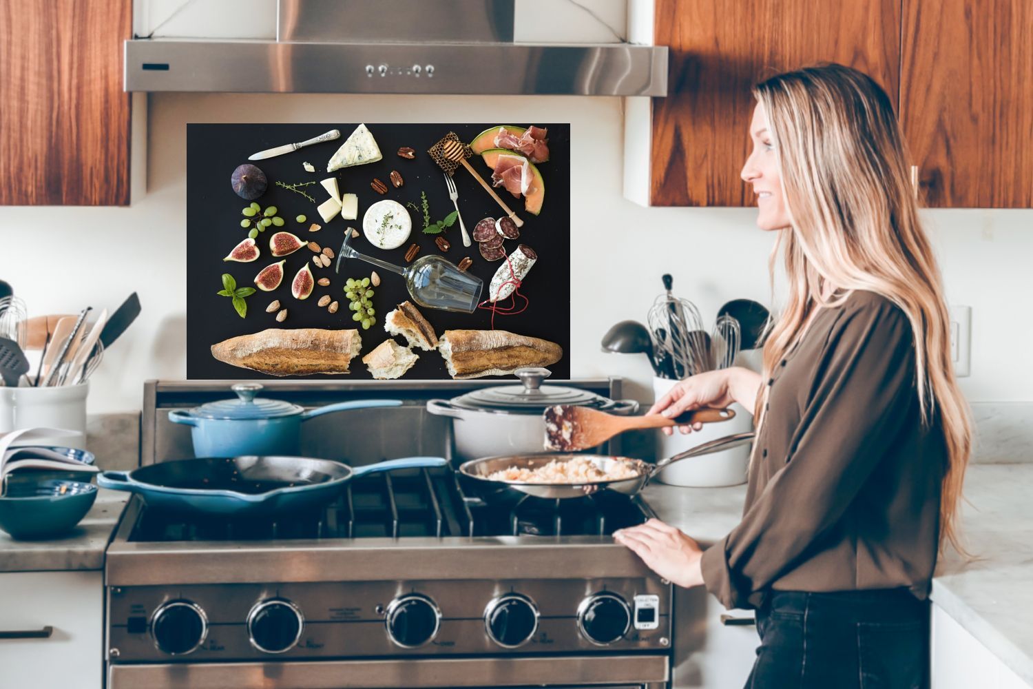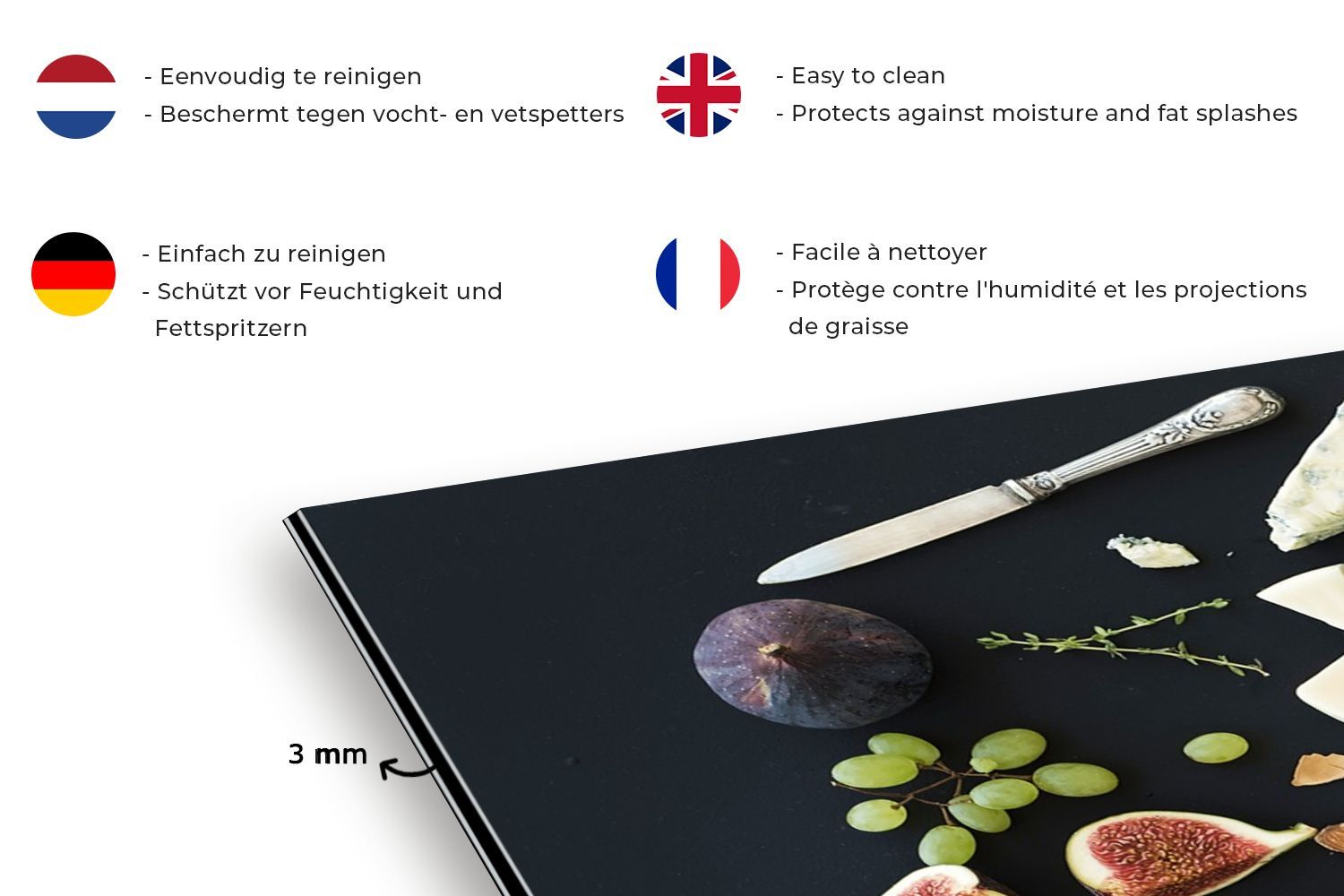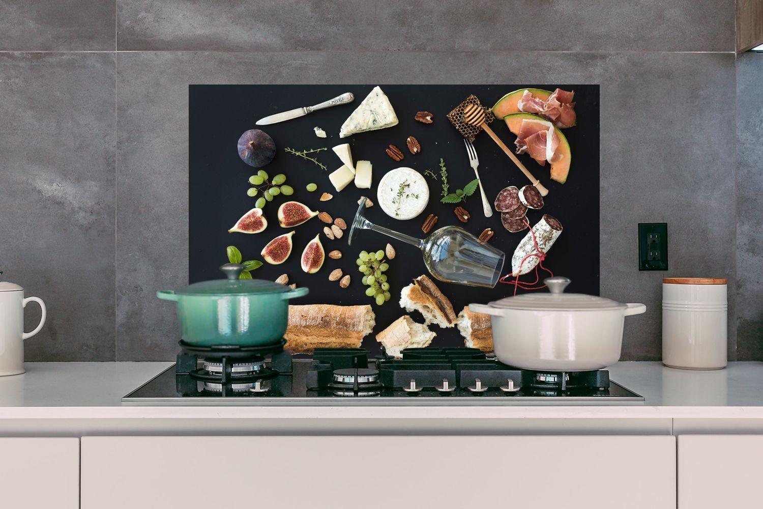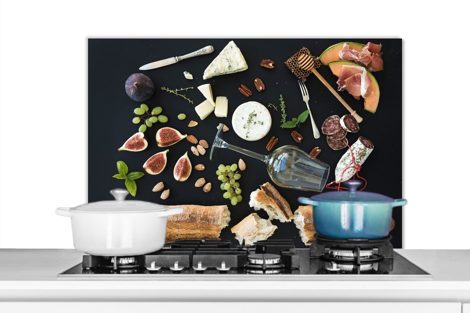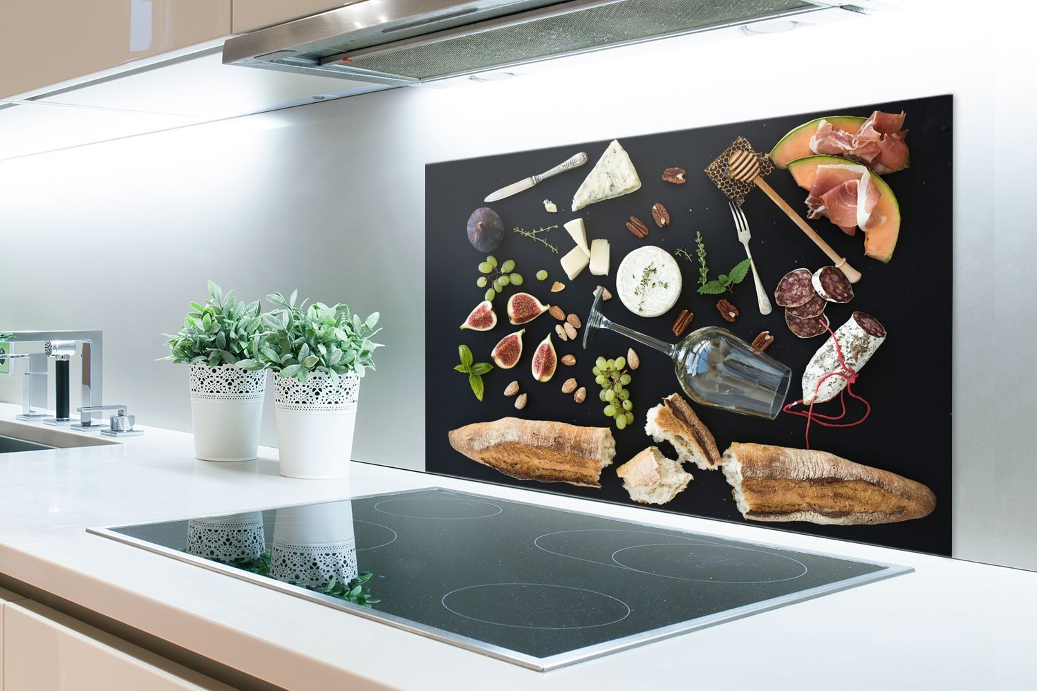 Spritzschutz Küchenrückwand - 80x55 cm Wein - Obst - Käse (Gr. 80x55 cm)