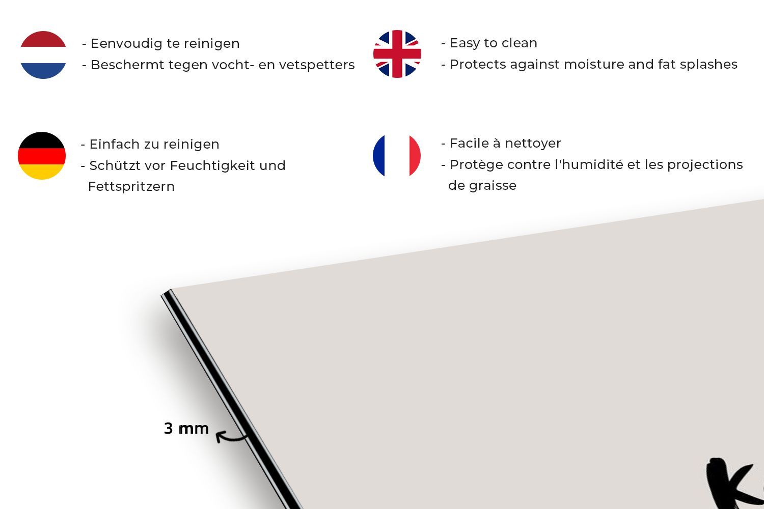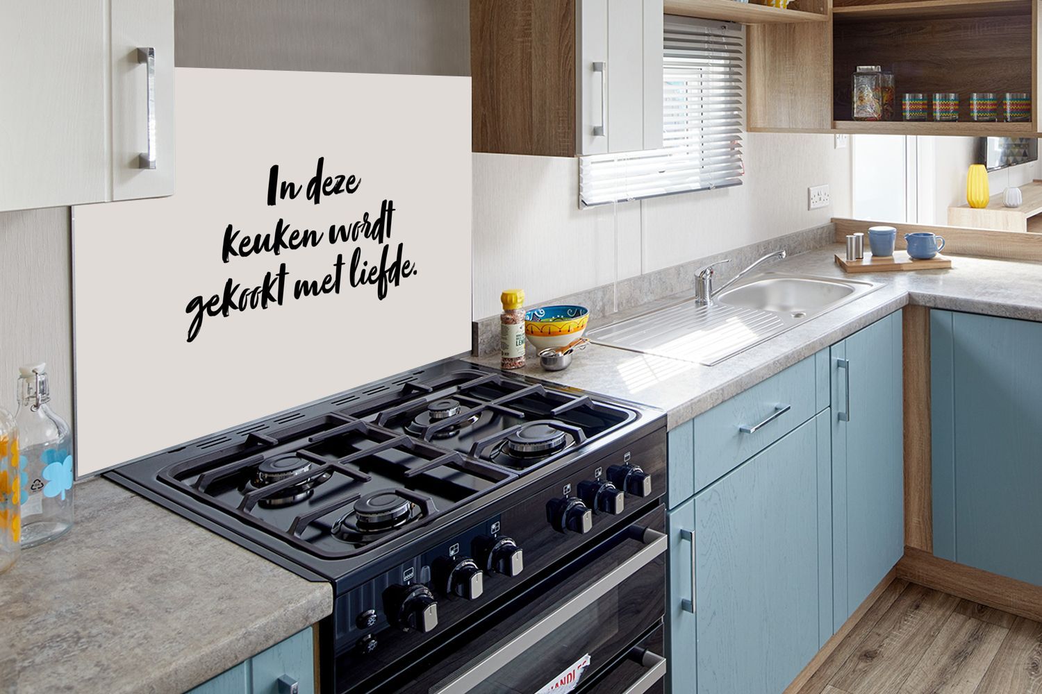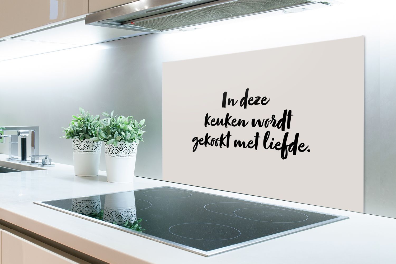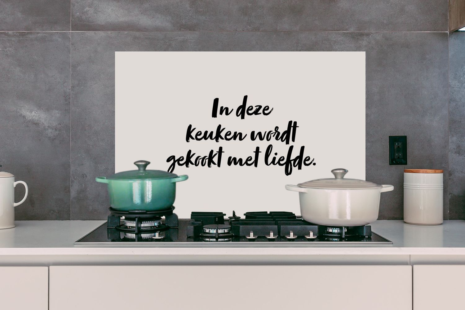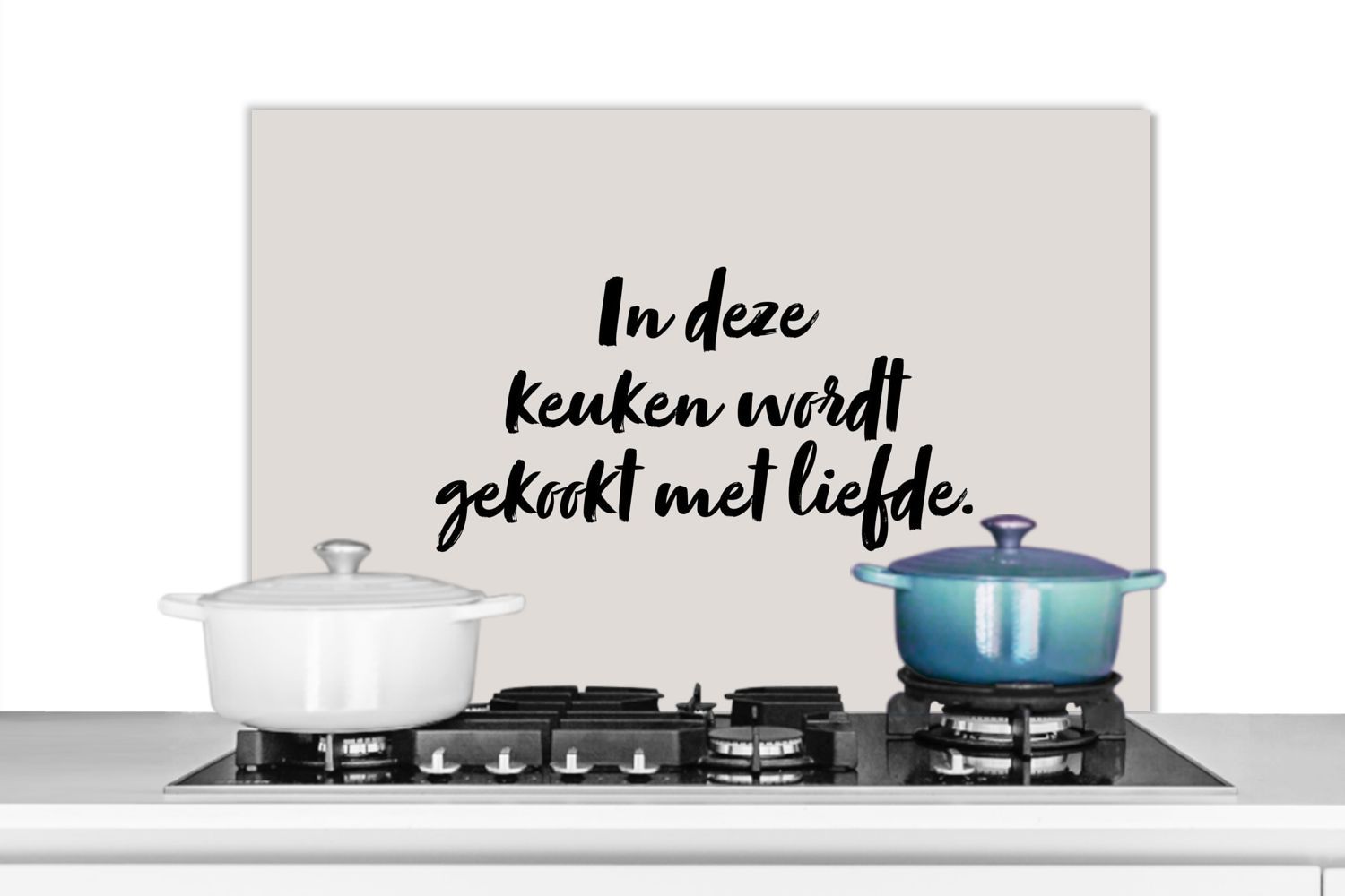 Spritzschutz Küchenrückwand - 80x55 cm Zitat - In dieser kocht man mit Liebe - Taupe