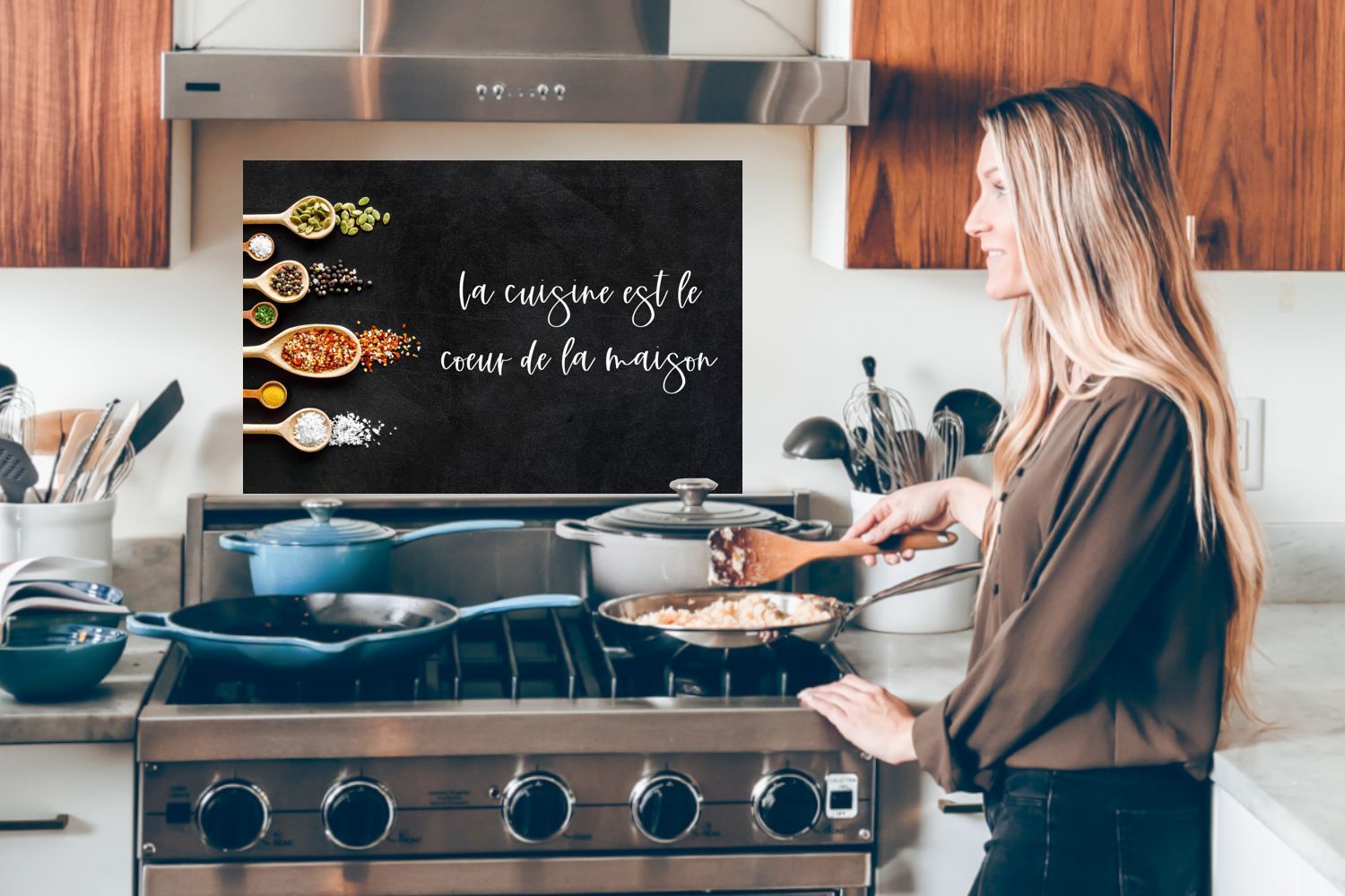 Spritzschutz Küchenrückwand - 80x55 cm Zitate - Sprichwörter - La cuisine est le coeu