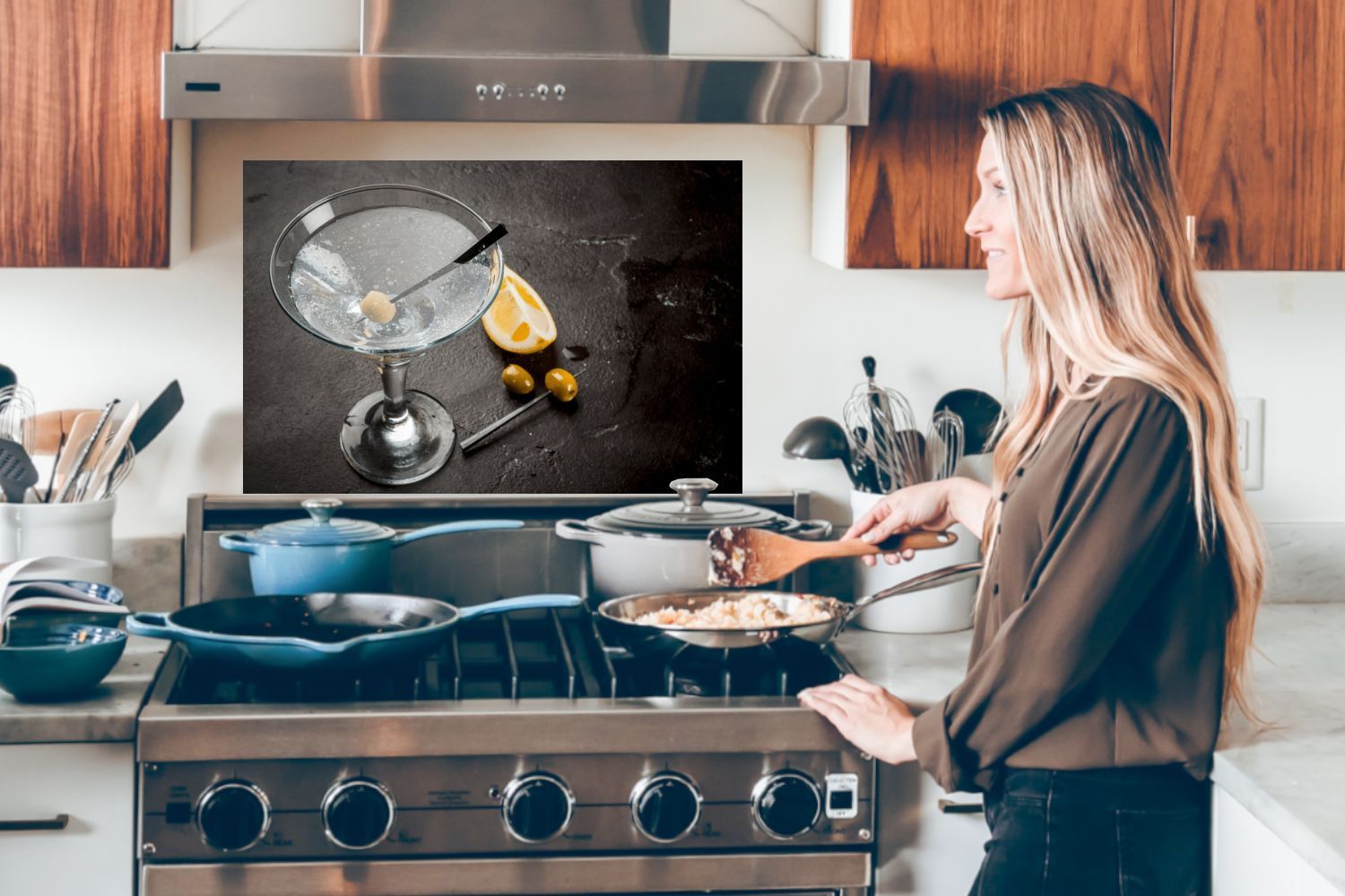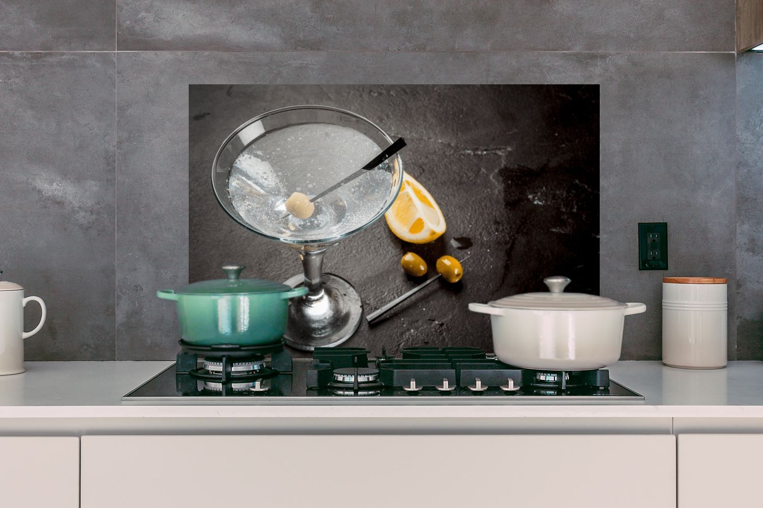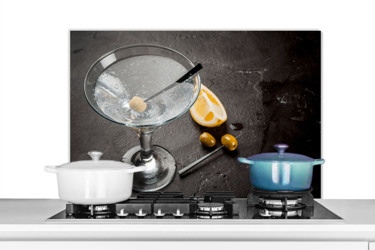 Spritzschutz Küchenrückwand - 90x60 cm Alkohol - Martini - Früchte - Oliven