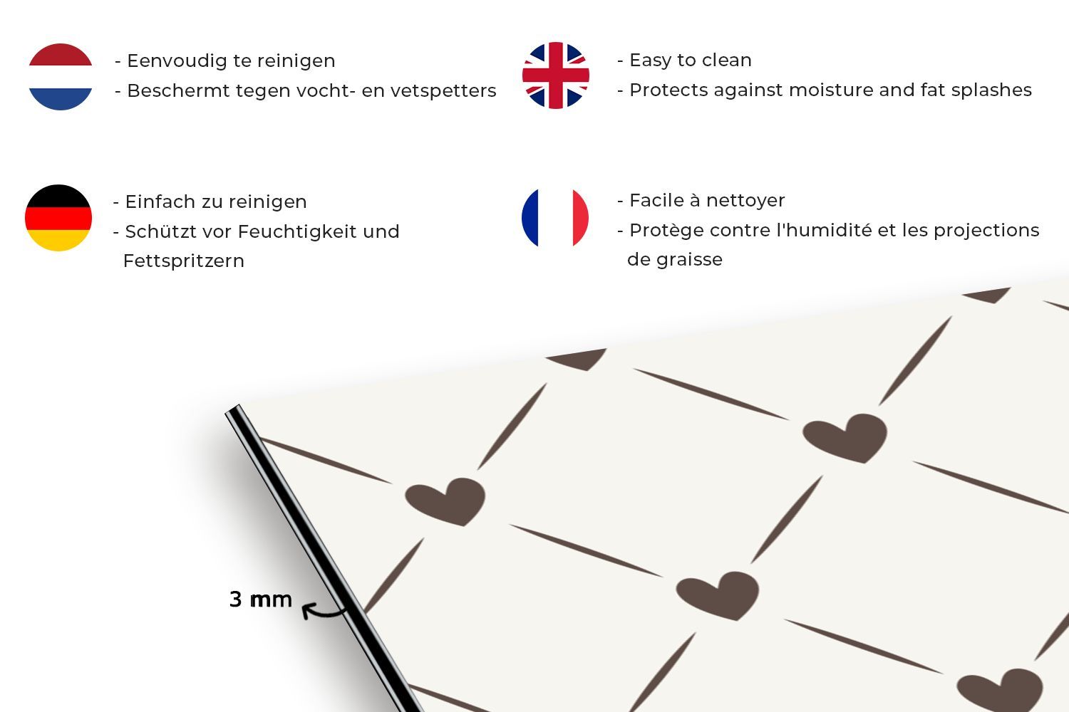 Spritzschutz Küchenrückwand - 90x60 cm Design - Geometrie - Muster - Herz