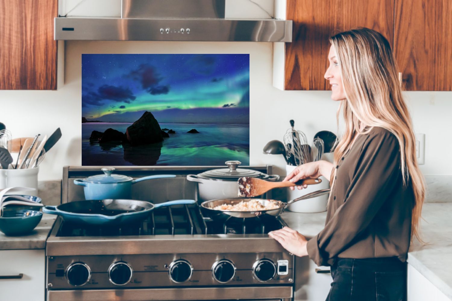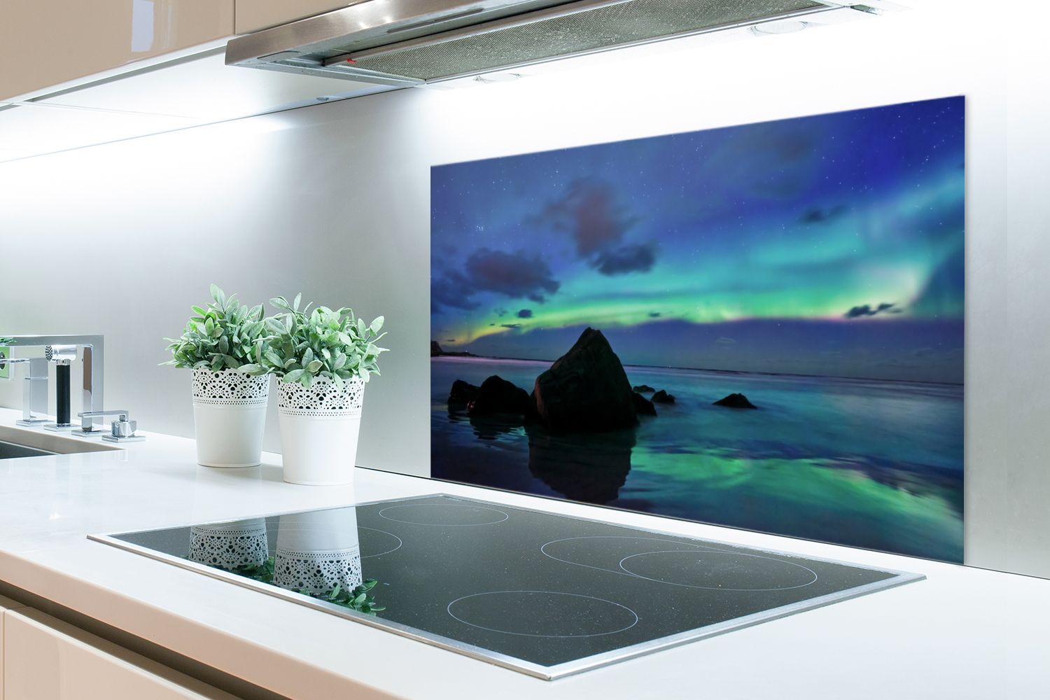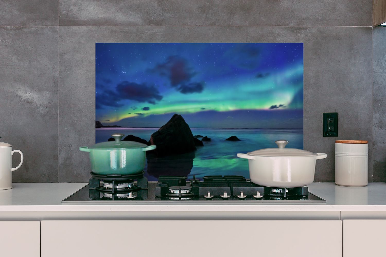 Spritzschutz Küchenrückwand - 90x60 cm Himmel - Landschaft - Polarlicht