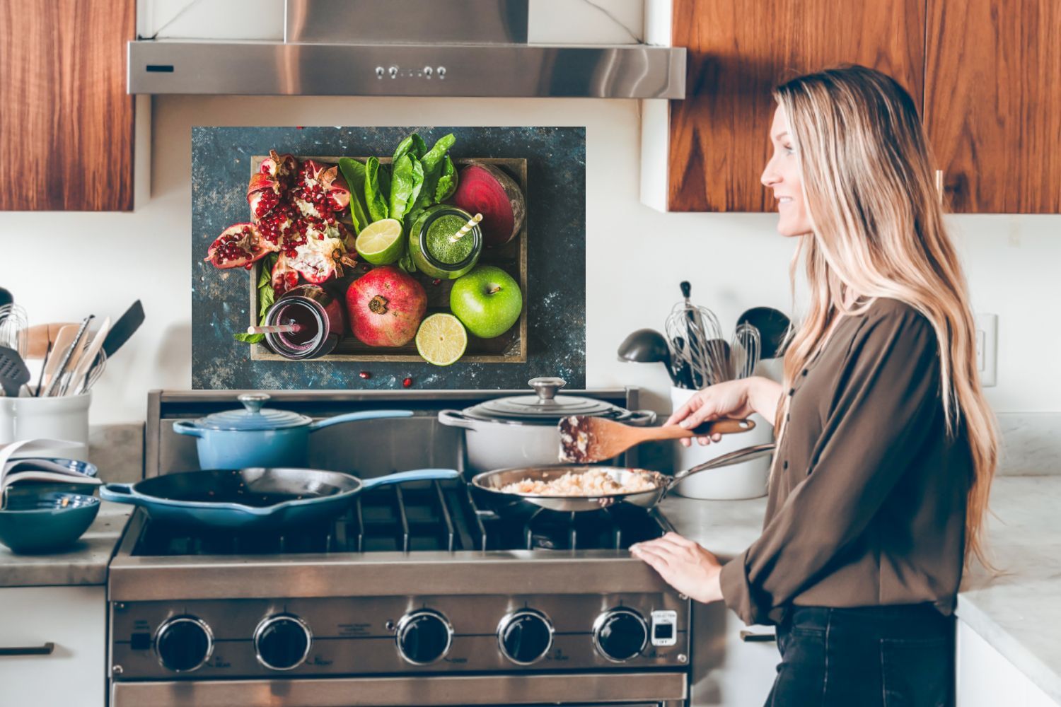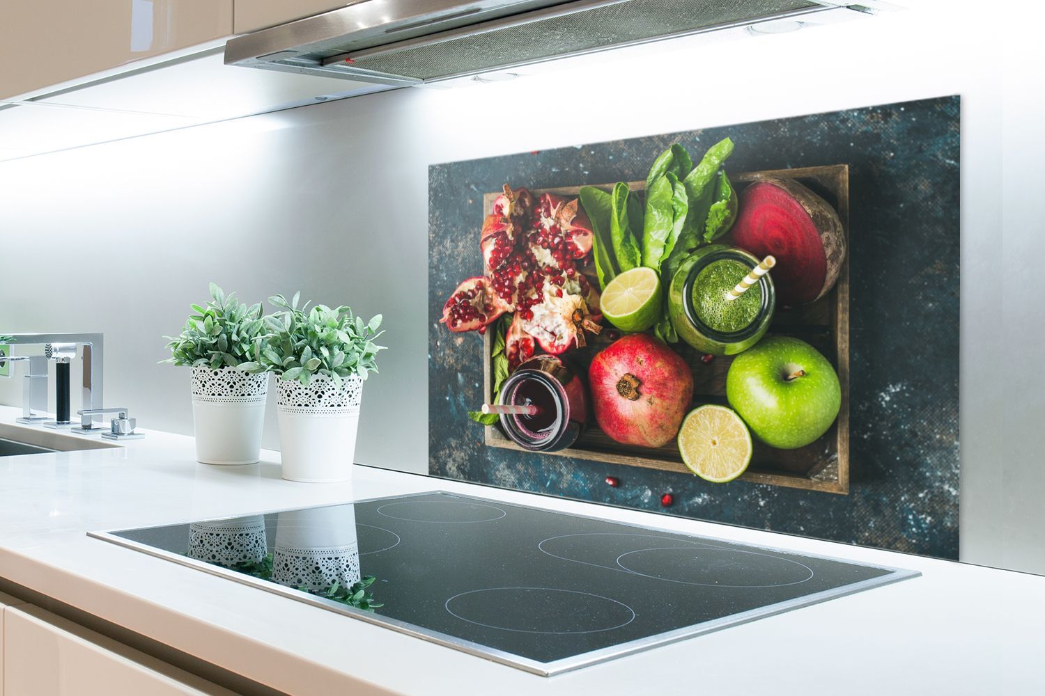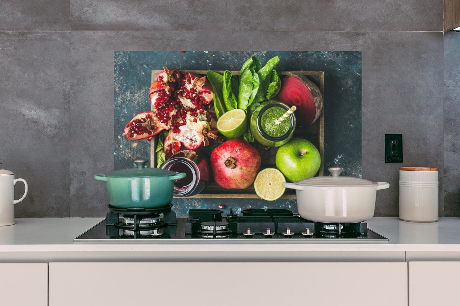 Spritzschutz Küchenrückwand - 90x60 cm Obstkiste - Obst - Smoothie (Gr. 90x60 cm)
