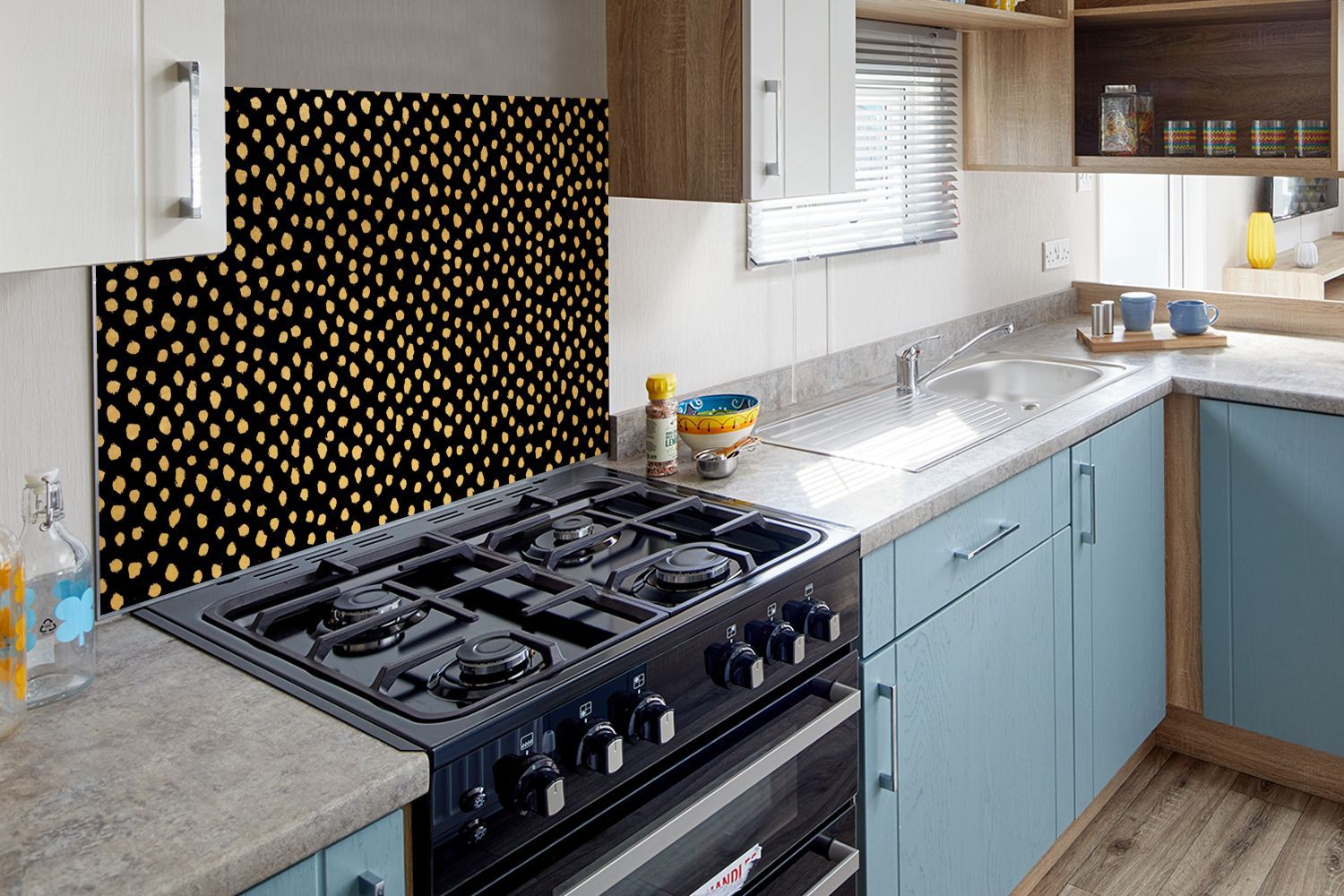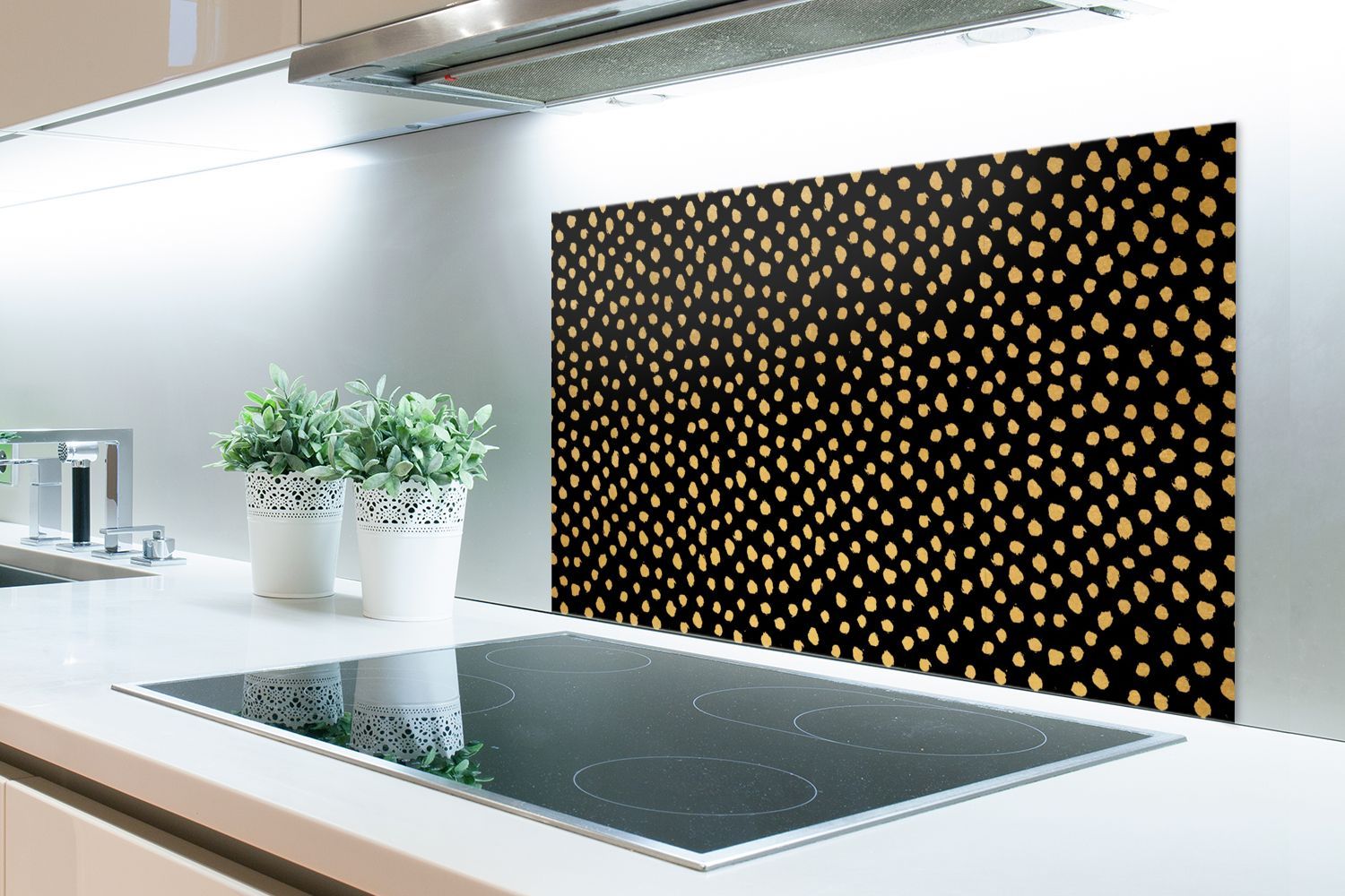 Spritzschutz Küchenrückwand - 90x60 cm Ockergelb - Schwarz - Tupfen - Muster