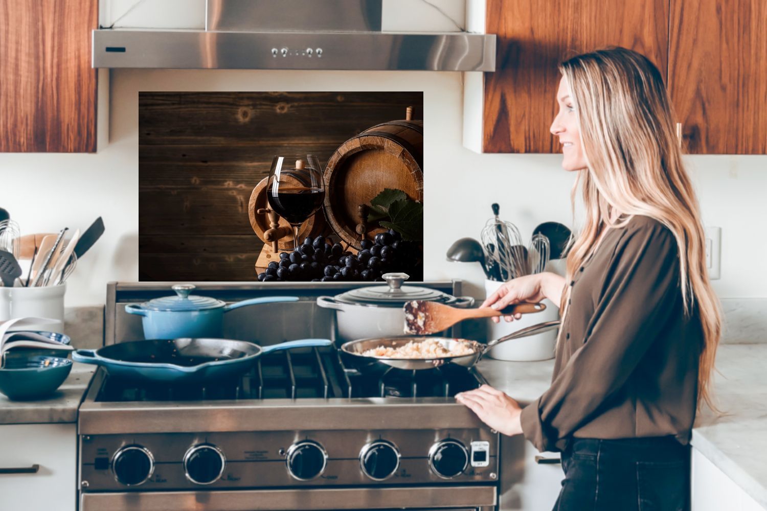 Spritzschutz Küchenrückwand - 90x60 cm Wein - Weinglas - Weintrauben - Glas
