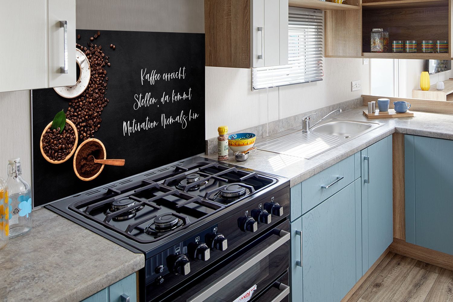 • Spritzschutz Küchenrückwand - 90x60 cm Zitate - Sprichwörter - Kaffeezeit