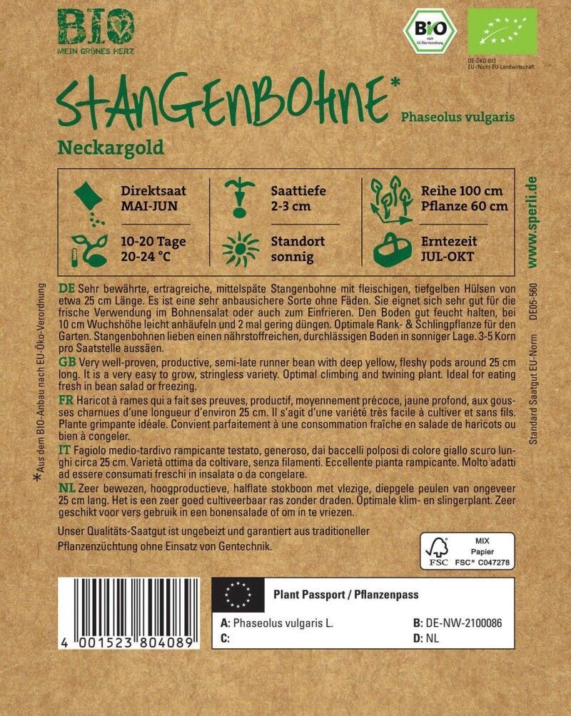 Sperli Sprli BIO Stangenbohne gelb, sehr bewährte ertragreiche mittelspäte