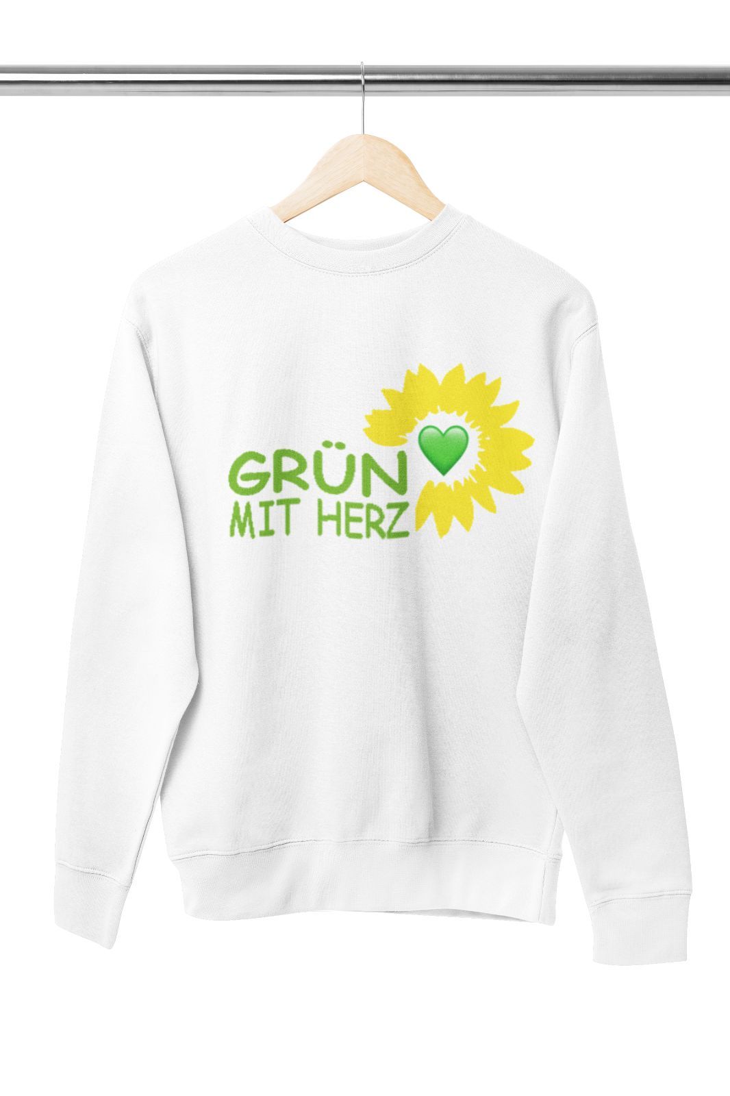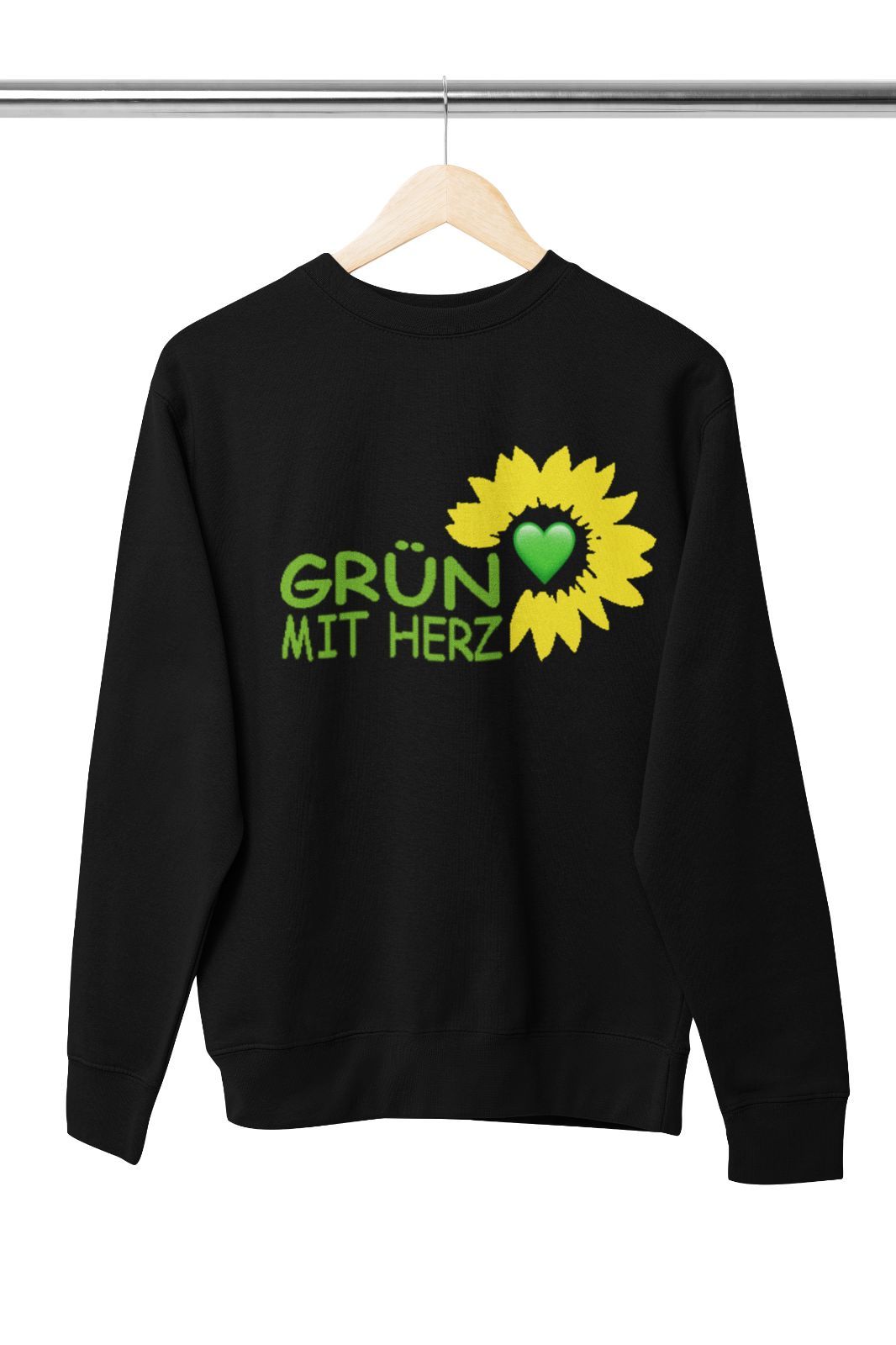 Herren Pullover – „Bündnis 90 Die Grünen“ mit Herz- und Blumenmotiv Design : Lässiger und stilvoller Herren Pullover mit dem Spruch „Grün mit Herz“ und einem Blumenmotiv, das die Werte von Bündnis 90 Die Grünen wie Nachhaltigkeit, Umweltschutz und Naturliebe symbolisiert. Ideal, um ein grünes Statem
