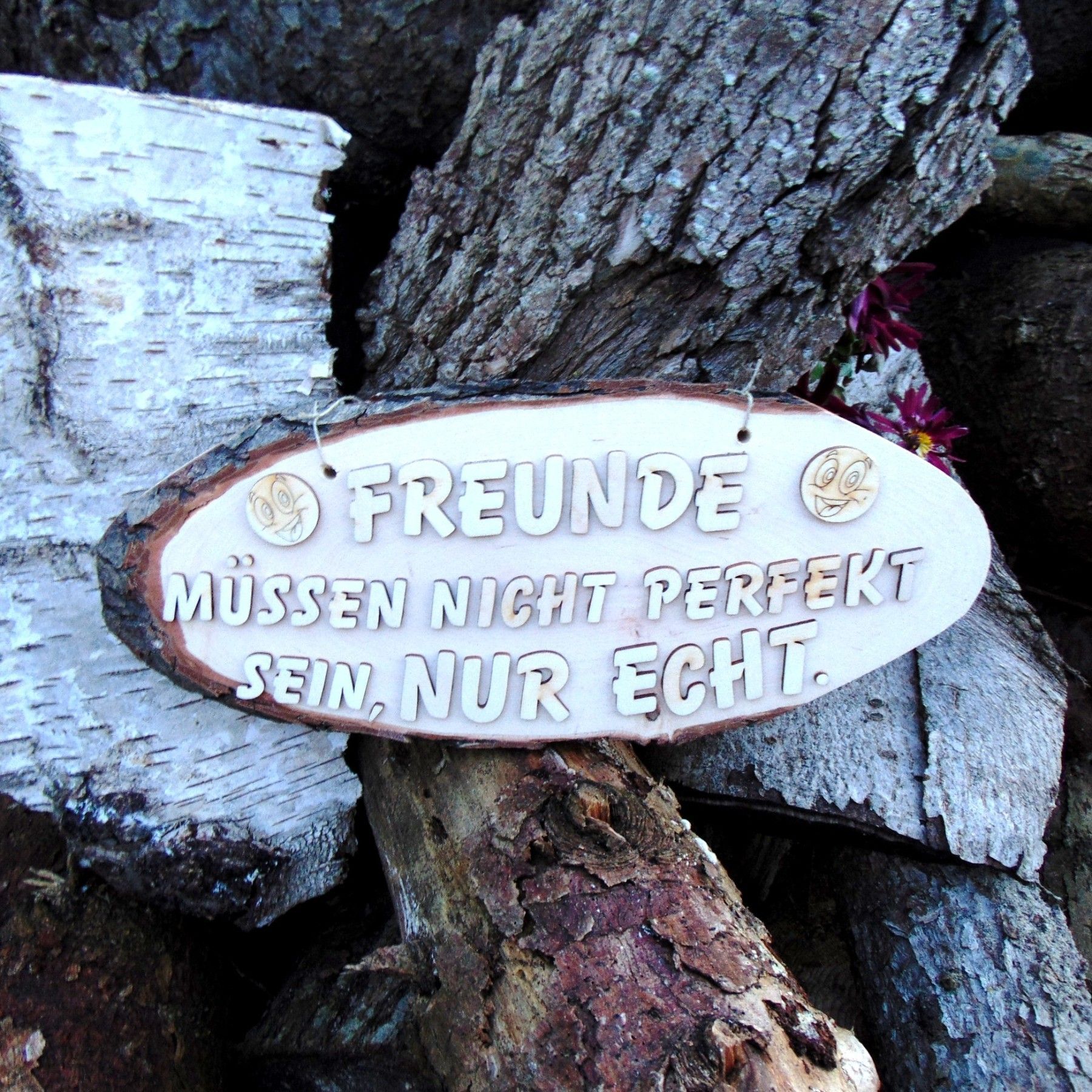 Spruch für Freunde als Geschenk "Freunde müssen nicht perfekt sein nur echt" aus Holz