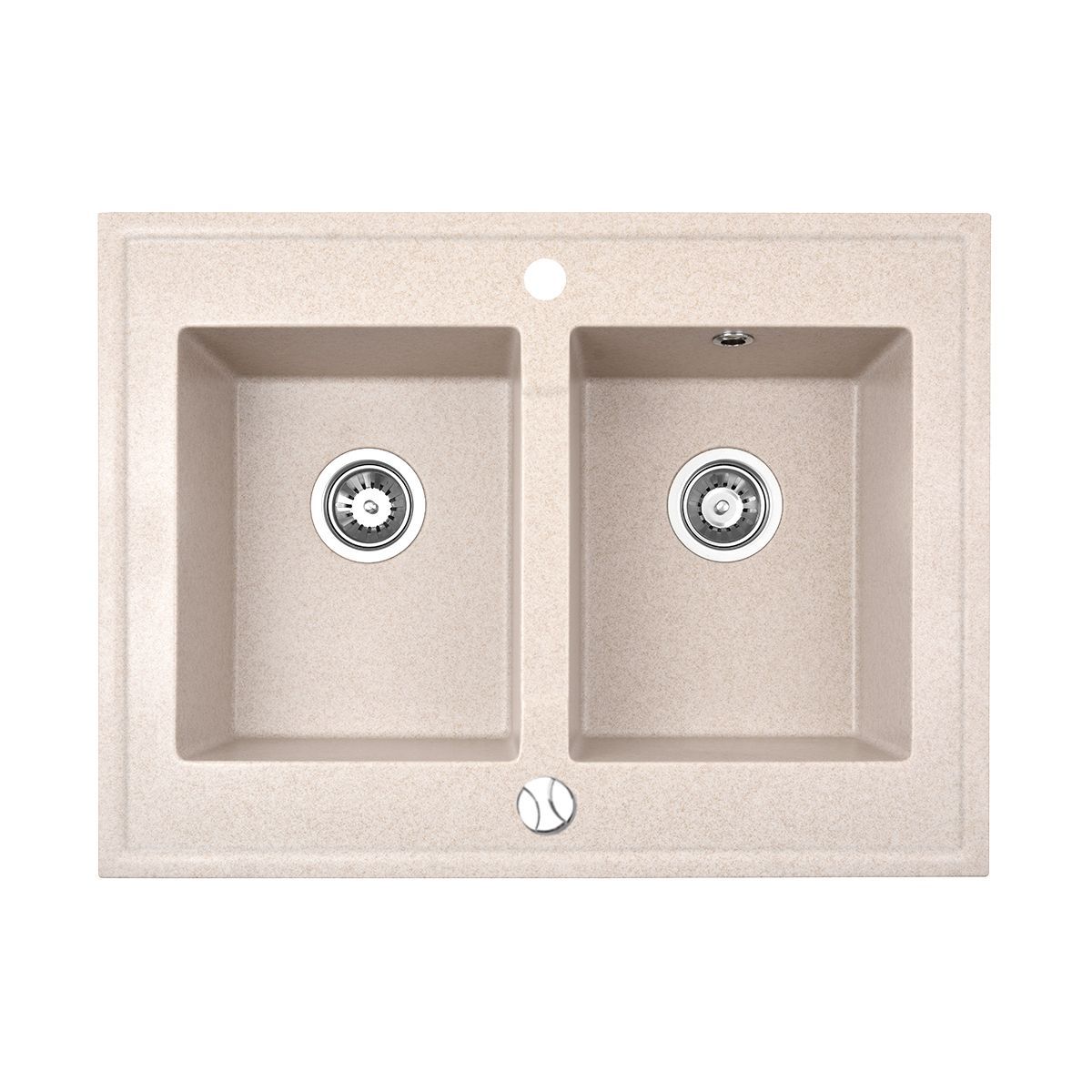 Spülbecken Grande in Sandbeige mit Siphon 80x60 cm Küchenspüle Granitspüle