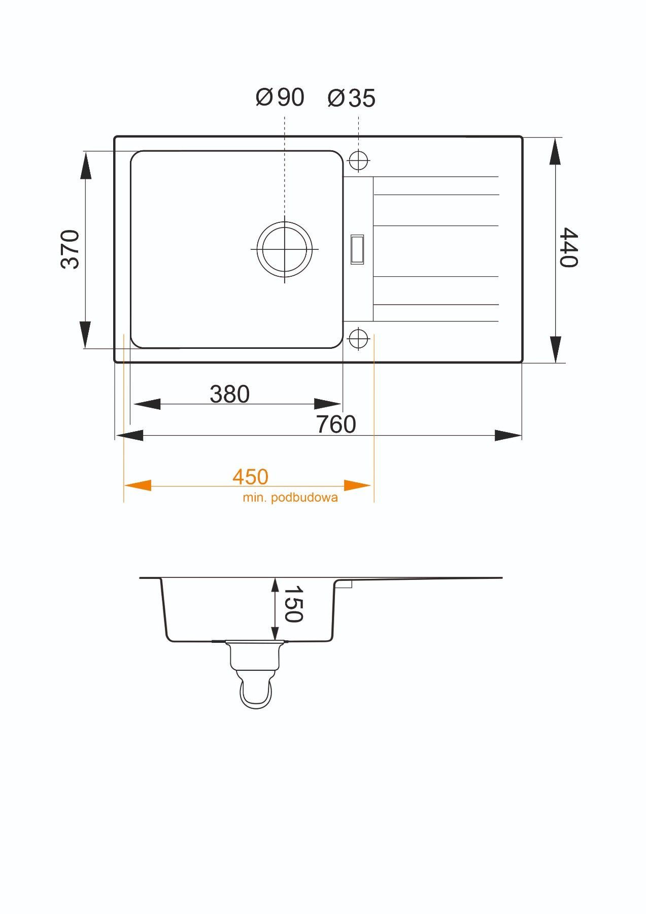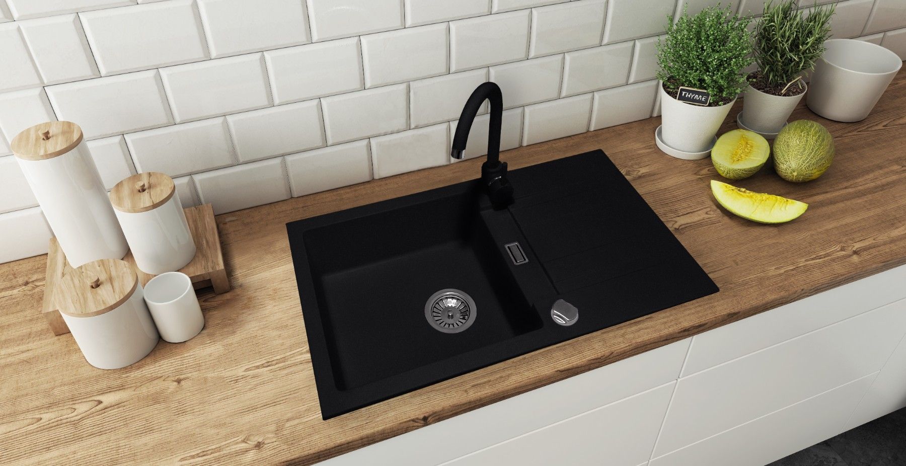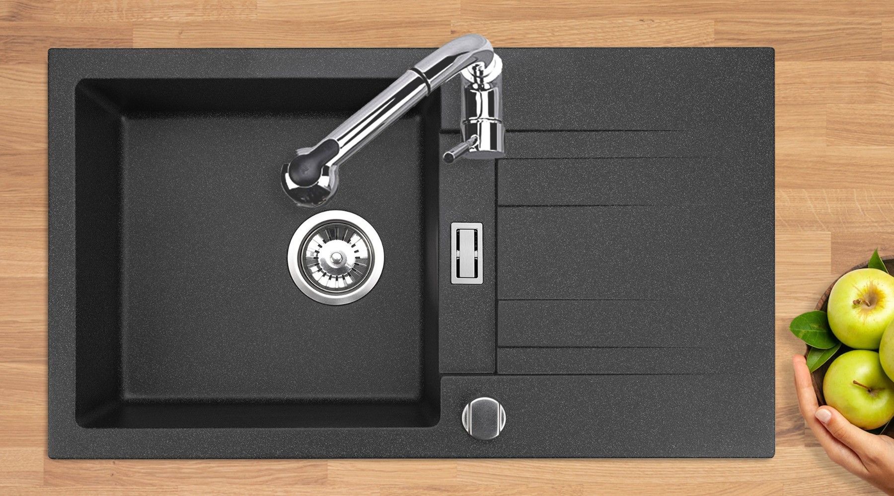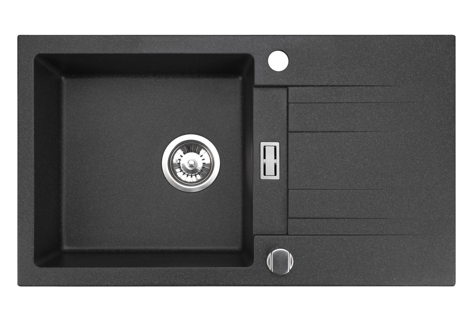 Spülbecken inkl Siphon / Farbe: Schwarz / 76x44cm Küchenspüle / Granitspüle / Neu