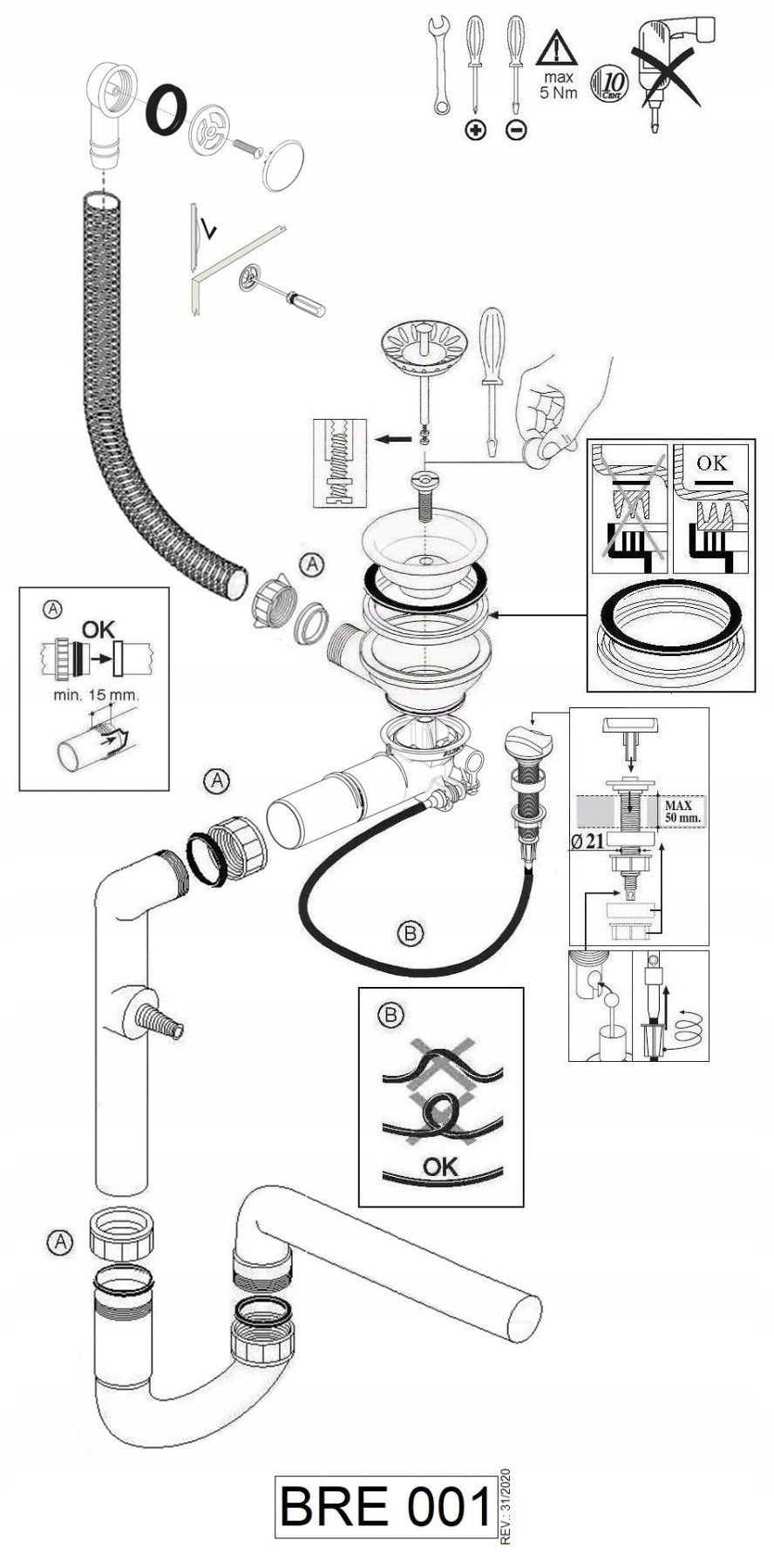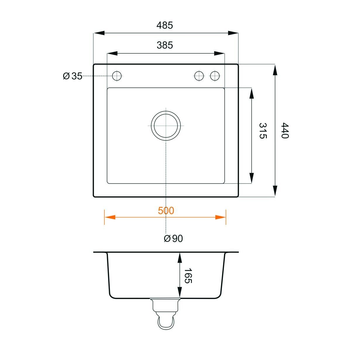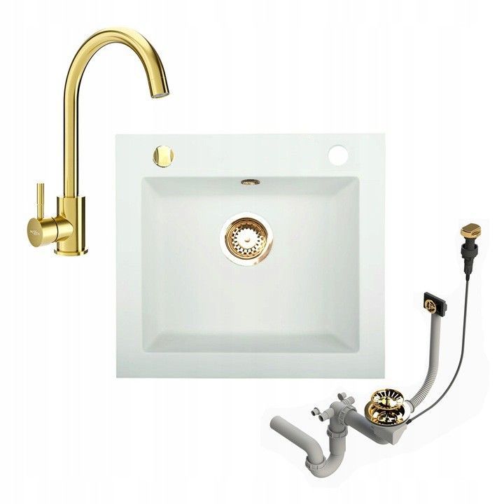 Spülbecken Küchenspüle 48,5x44 in Weiss / Granitspüle/ Siphon + Wasserhahn in Gold