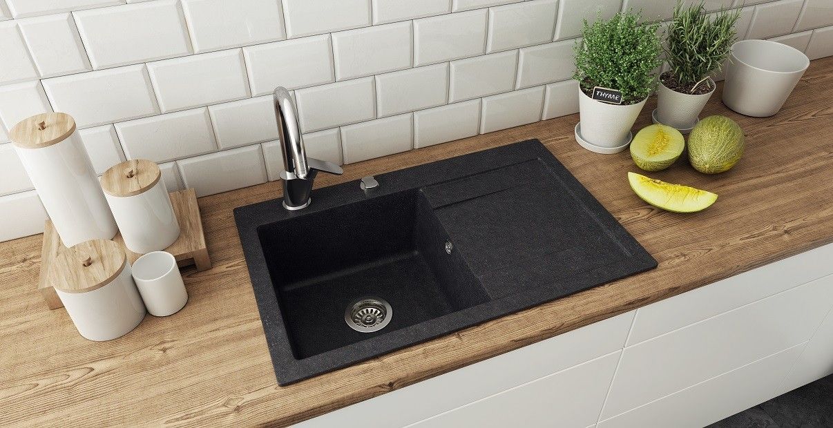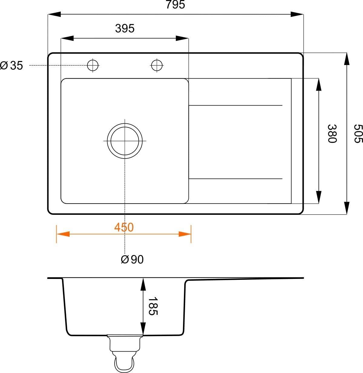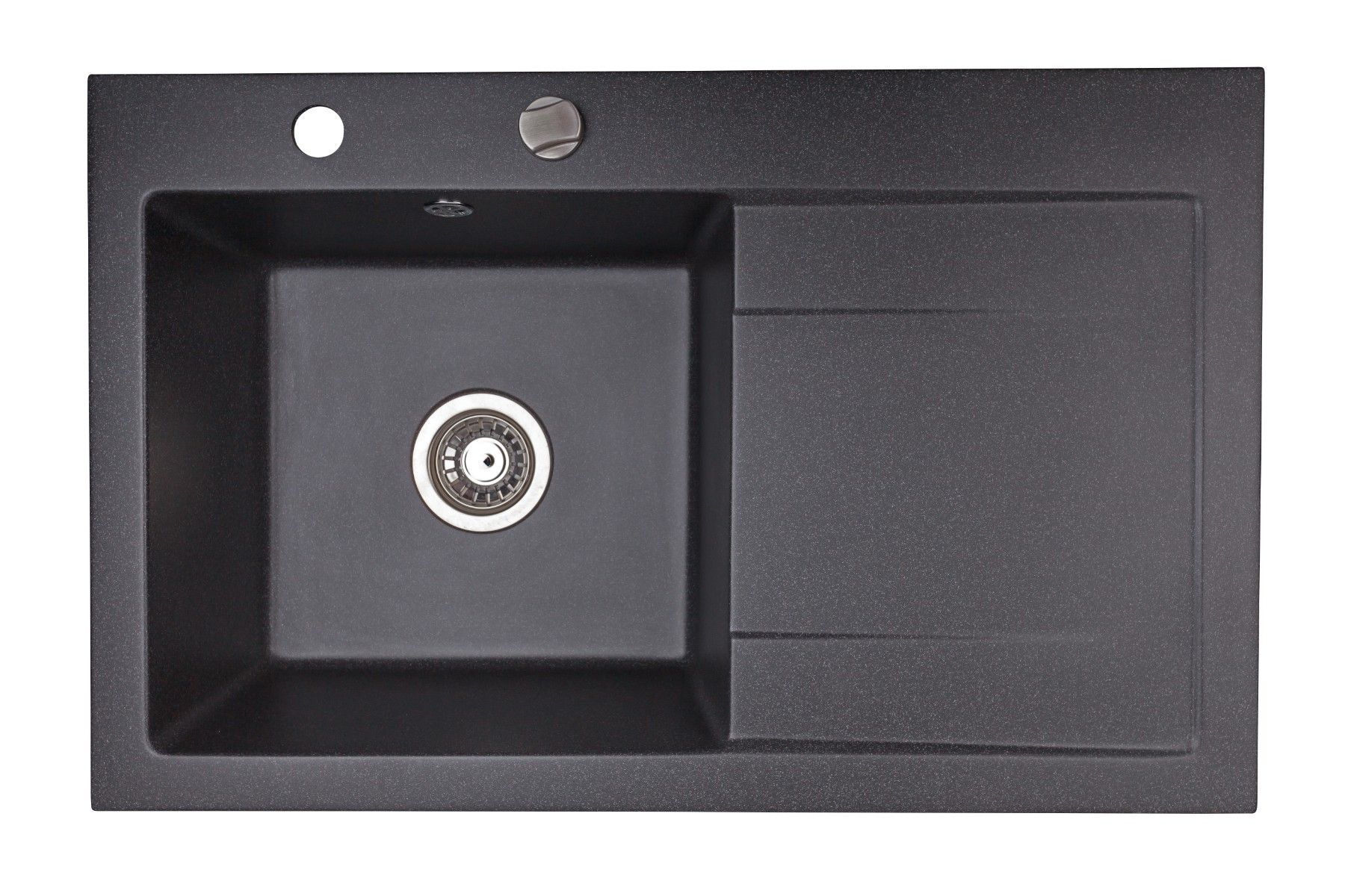 Spülbecken MILANO 80 L/ 79,5x50,5 Küchenspüle Spüle/ Granitspüle / Siphon / Schwarz