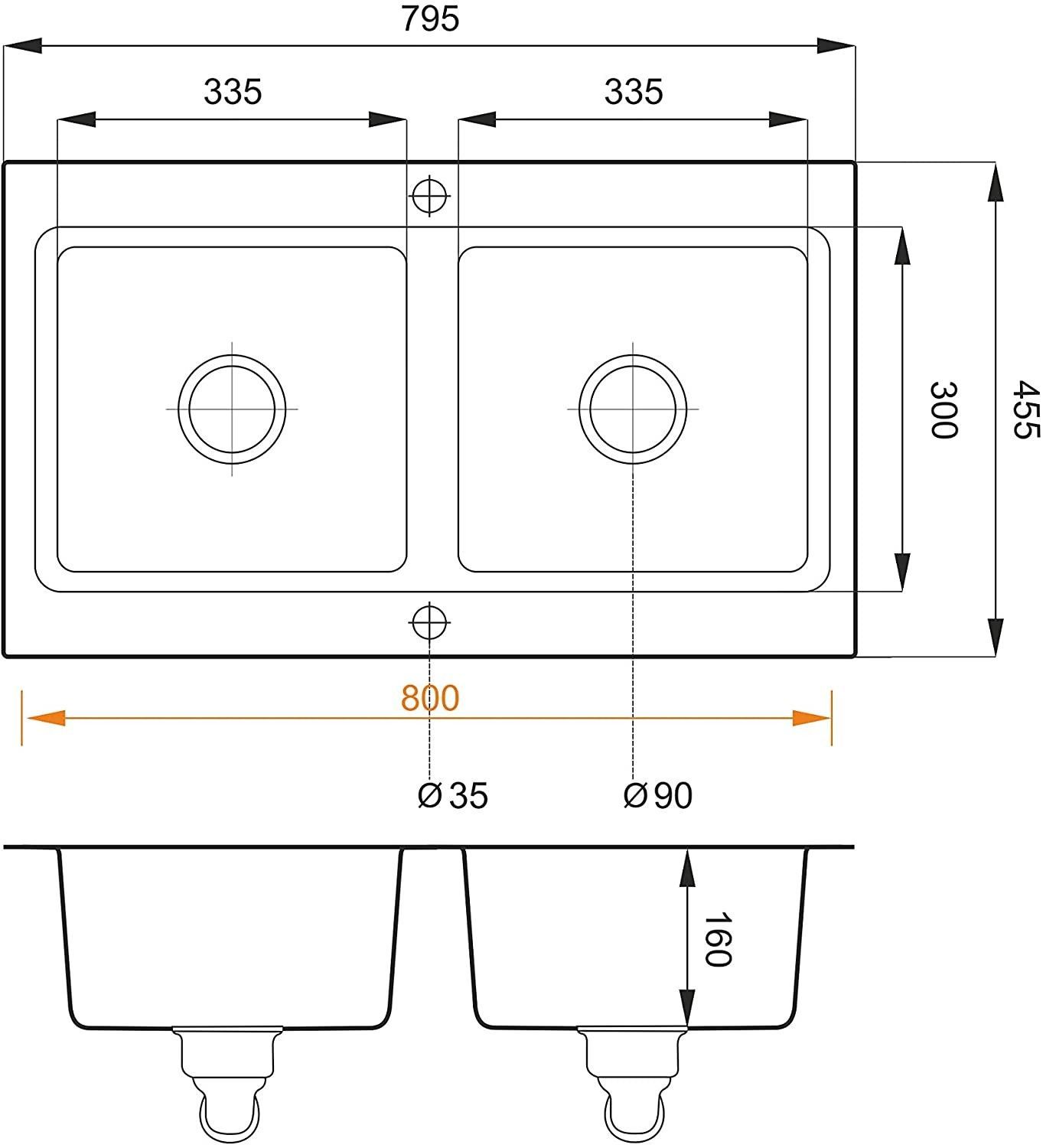 Spülbecken NUB 20 / 79,5x45,5 Küchenspüle Einbauspüle/ Granitspüle / Siphon