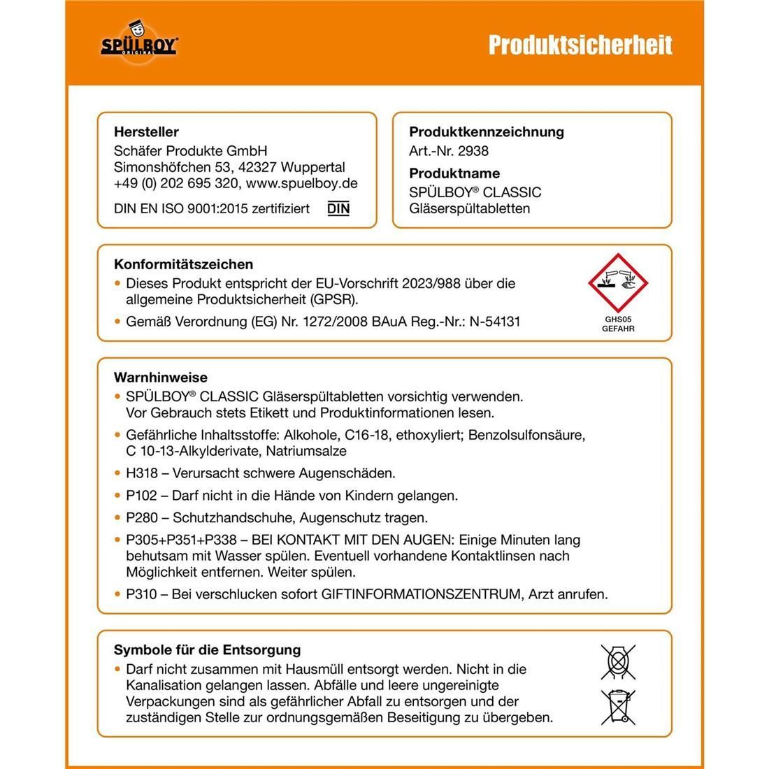 Spülboy® Classic Gläserspültabletten, 750 g Box, 48 Stück für 192 Füllungen