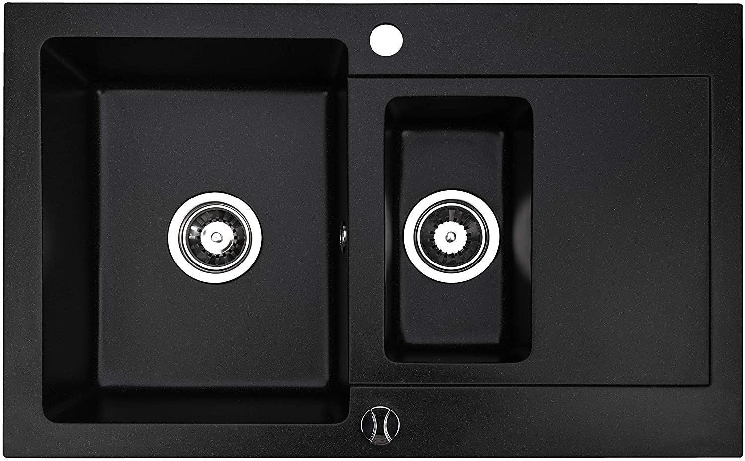 Spüle COMO79 - in Schwarz / mit Siphon / 79x50 cm Küchenspüle / Granitspüle