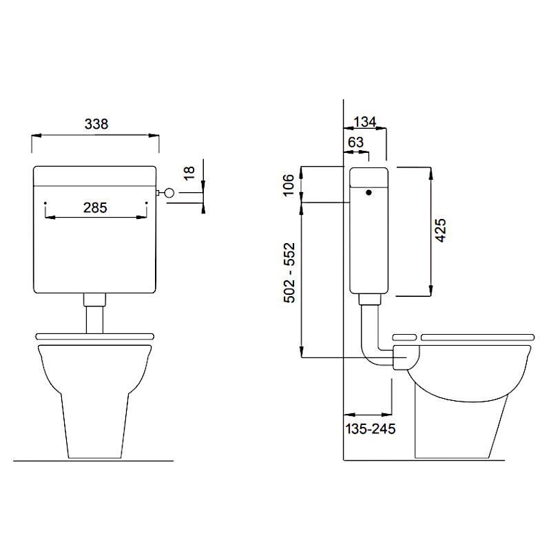 Spülkasten WISA 470 AP, tiefhängend, 6-9 Liter mit Spartaste