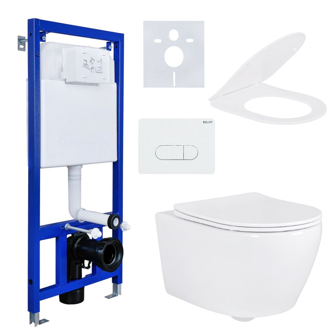 Spülrandlos Hänge Wand-WC & Belvit Vorwandelement Spülkasten Softclose Deckel