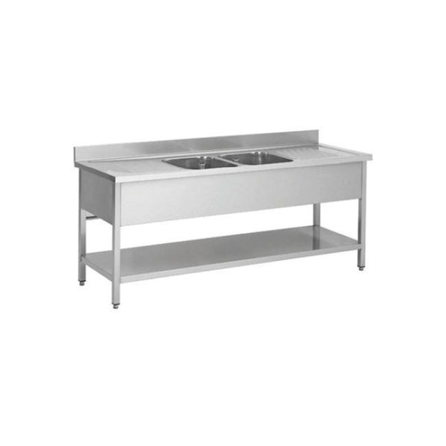 Spültisch Aus Edelstahl, Zwei Becken Mitte, 200 X 60
