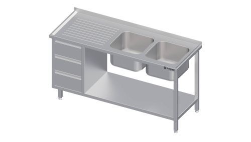 Spültisch mit Grundboden, und 3er Schubladenblock, mit zwei Becken, mit Aufkantung, v