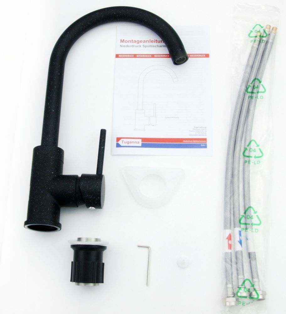 Spültischarmatur für Niederdruck Boiler Küchenarmatur Einhand Rundbogenauslauf Granit