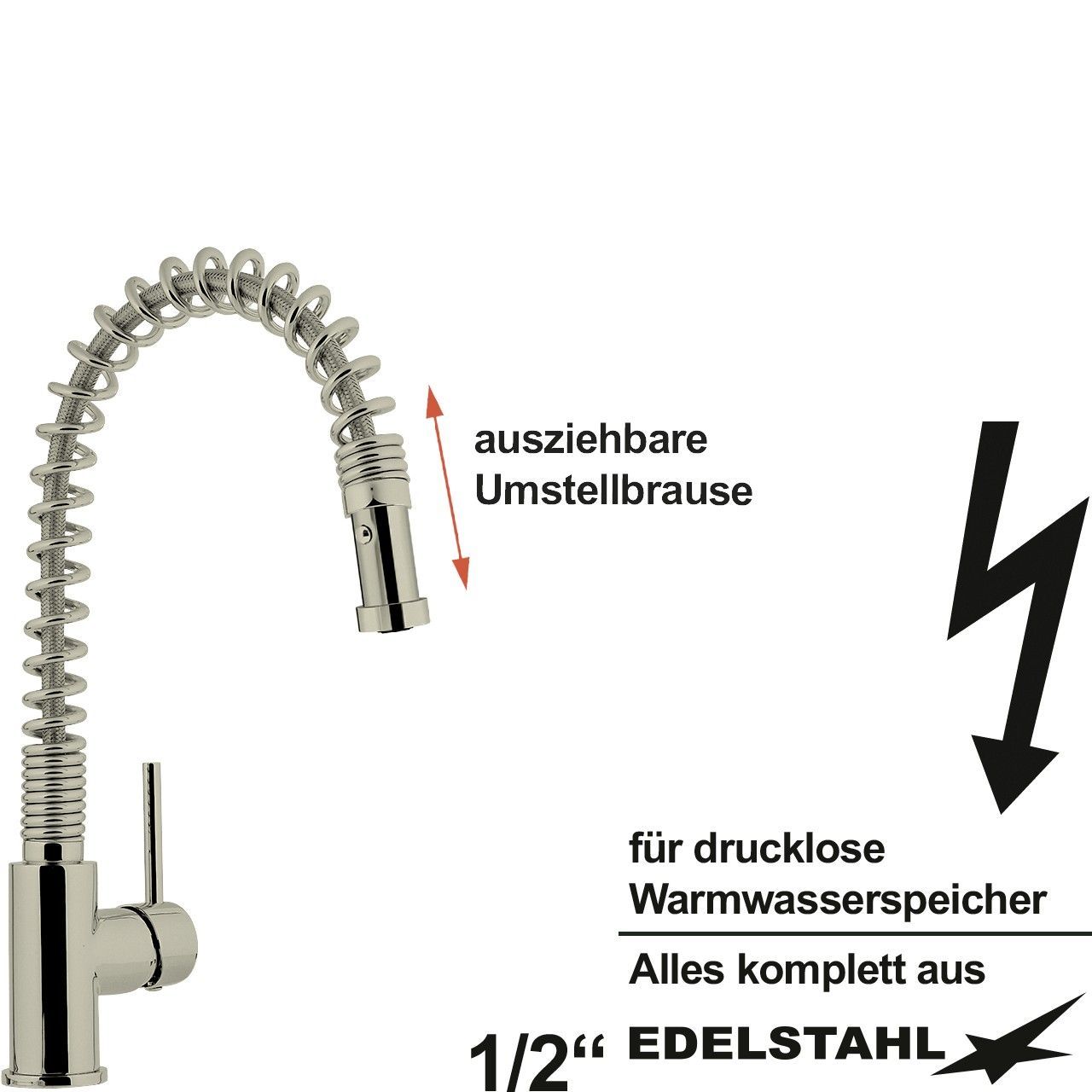 Spültischarmatur Hebelmischer ausziehb. Umstellbrause Edelstahl Niederdruck NEU