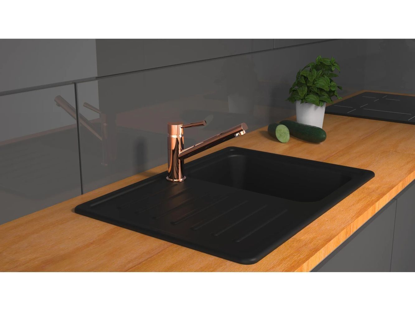 • Küchenarmatur Wasserhahn SHIRE Küchenmischer Schwarz-Roségold Spültischarmatur