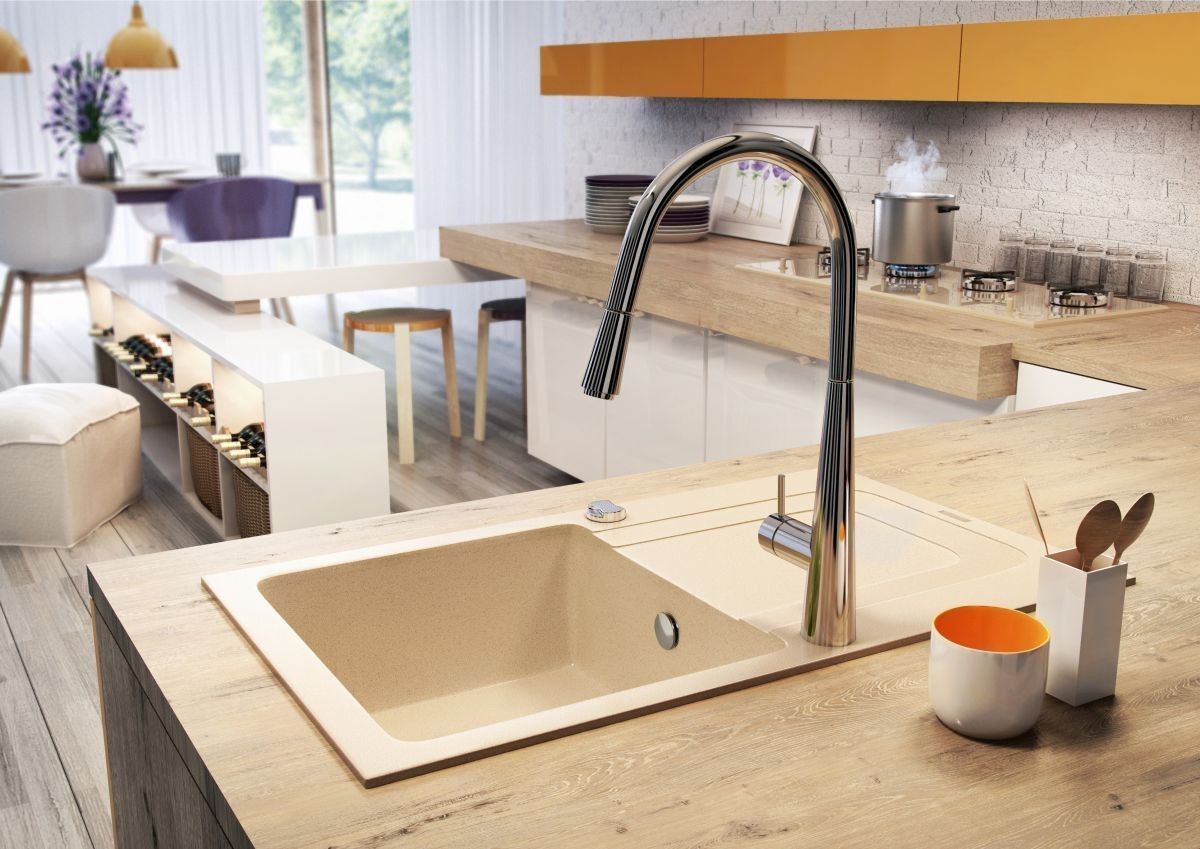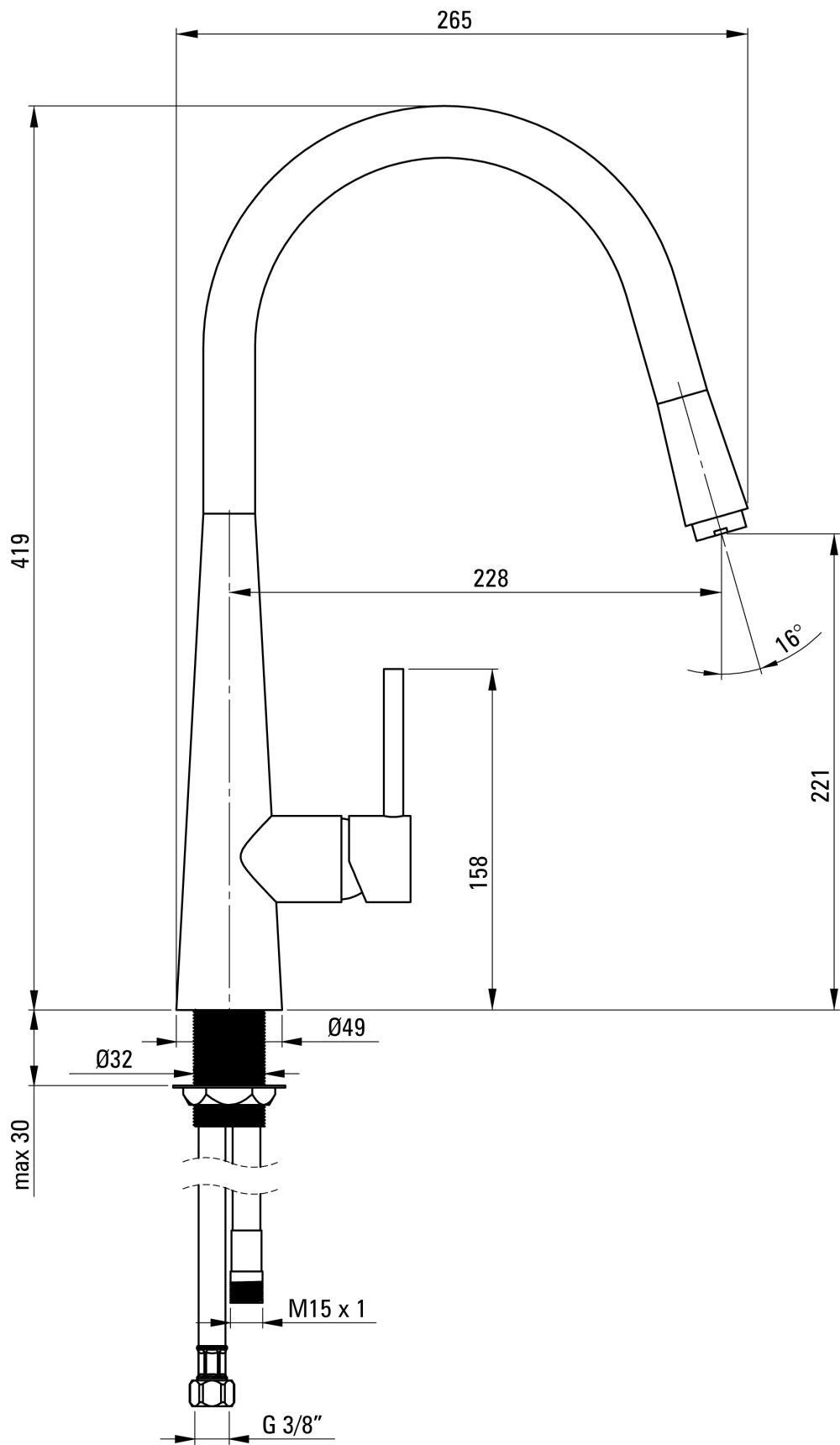 Spültischarmatur mit herausziehbarer Geschirrbrause Hochdruck Mischbatterie Chrom