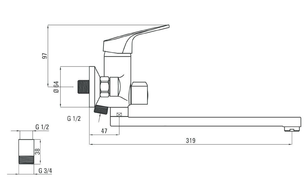 Spültischarmatur mit langen Auslauf und 3/4" Reduzierstück für Spülmaschinenanschluss