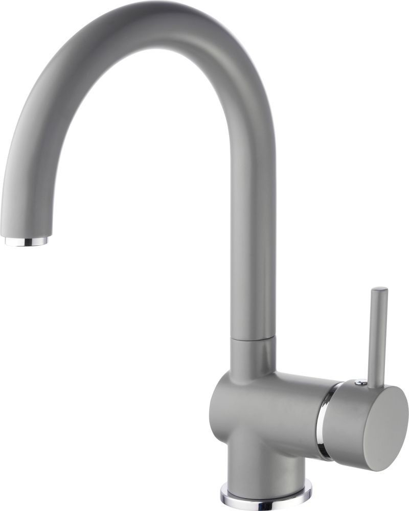Spültischarmatur Prag, Küchenarmatur Mischbatterie Rundbogenauslauf matt hellgrau