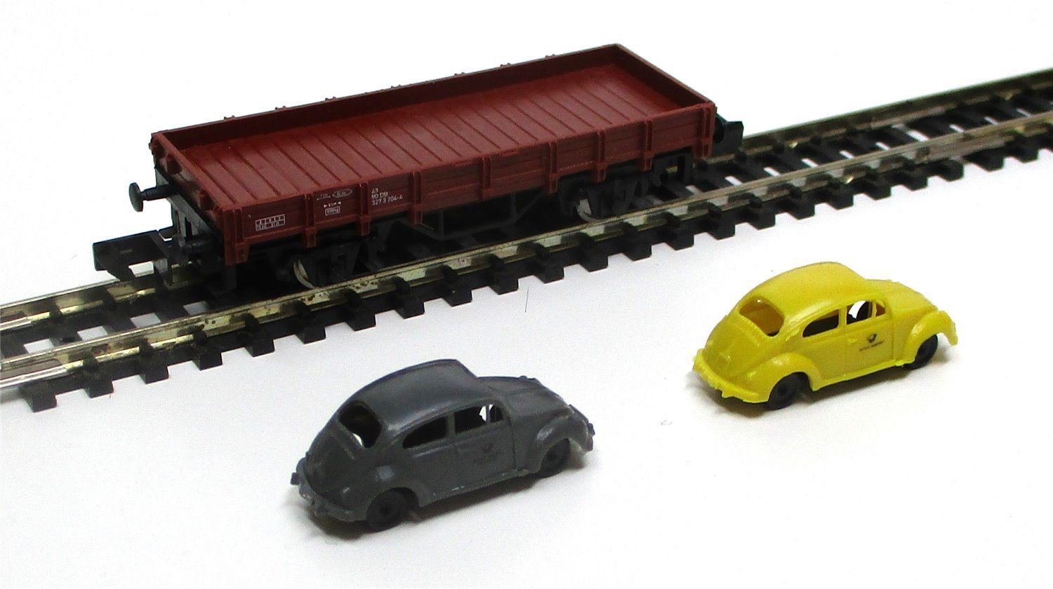 Spur N Arnold 0406 Niederbordwagen 2 Postautos DB OVP (6537K)