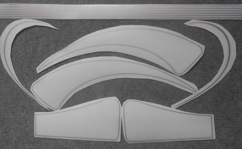 Silber Anfertigung nach Originalen Benzinfest, Überlackierbar Die Aufkleber sind unter Übertragungsfolie zum einfachen positionieren, die Folie wird dann entfernt 1 Paar Tankbögen Aufkleber für Tank R L 1 Paar Federkasten Aufkleber R L 1 Paar Schutzblech Aufkleber R L beide Schutzblechaufkleber habe