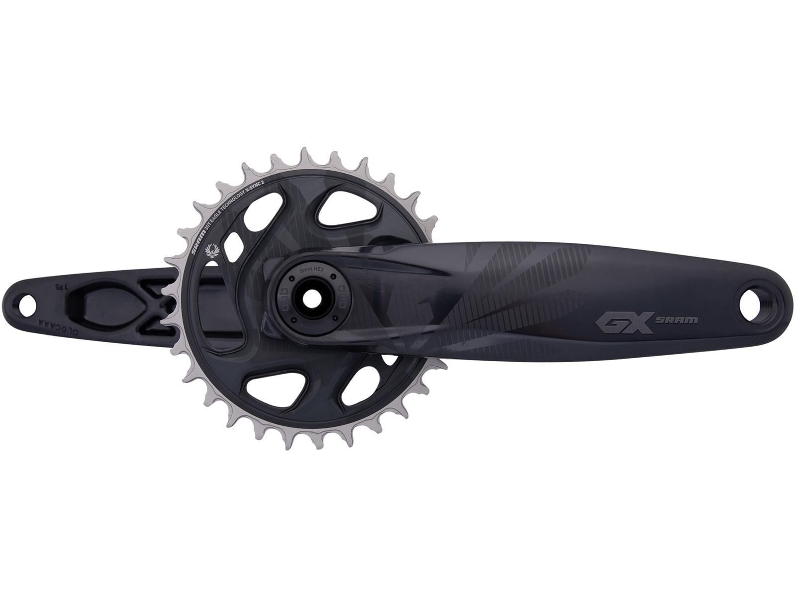 SRAM Kettenradgarnitur "GX Eagle", 1-fach, DUB, ohne Innenlager, schwarz, 11-/12-fach kompatibel, Kurbelarme aus Aluminium, X-SYNC 2 CNC gefrästes Kettenblatt aus Aluminium zur Direktmontage, geeignet für Rahmengehäuse: BSA, Pressfit, BB30, BB30 Pressfit. Q-Faktor: Standard 49mm / 172mm, Boost 52mm / 172mm, Super Boost+ 56,5mm / 178mm, Fatbike 4" 66,5mm / 206mm, Fatbike 5" 76,5mm / 206mm, lunar, 30 Zähne, Fatbike 4, 175mm Kurbellänge, Kettenlinie 66,5mm