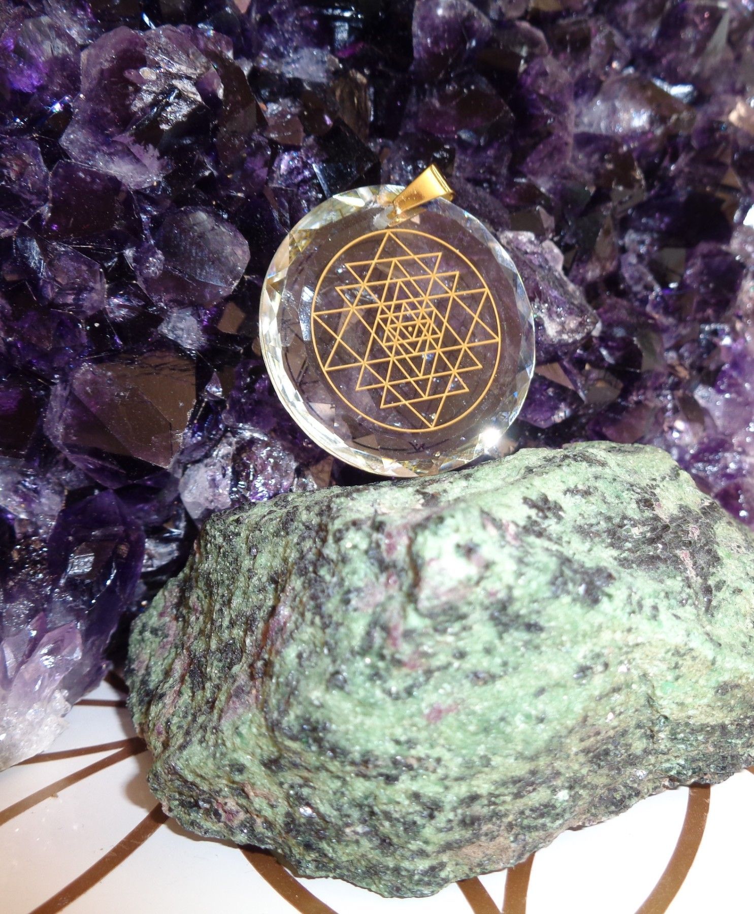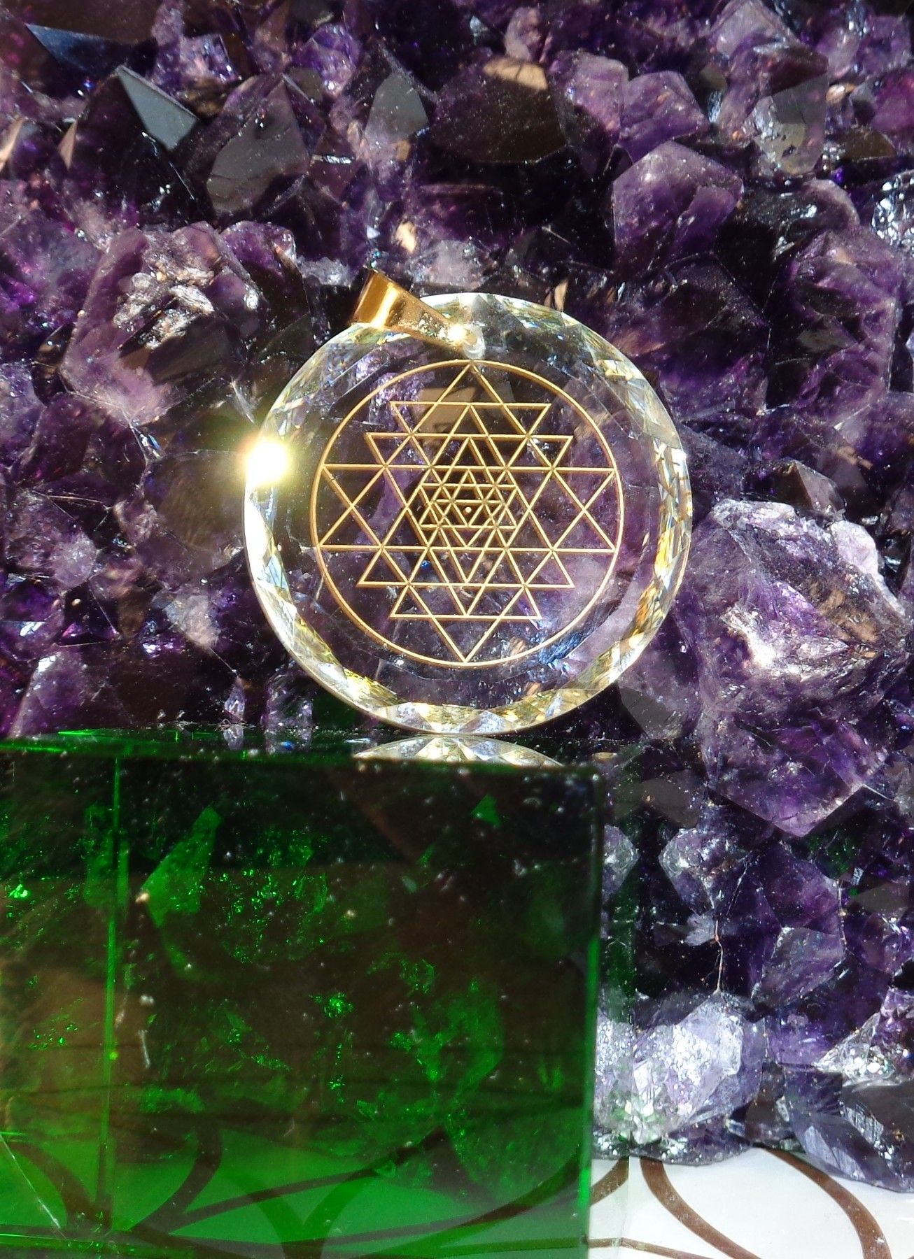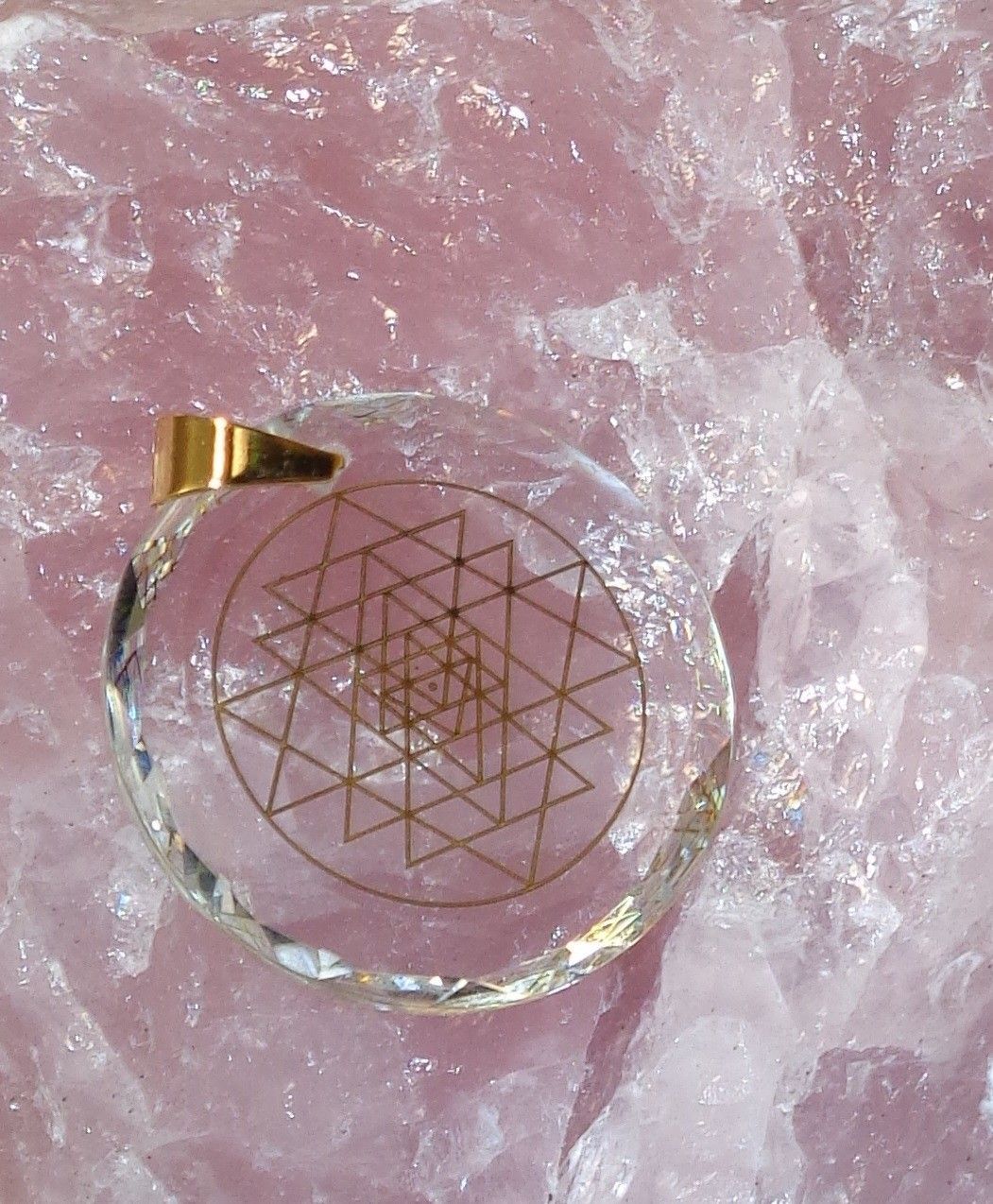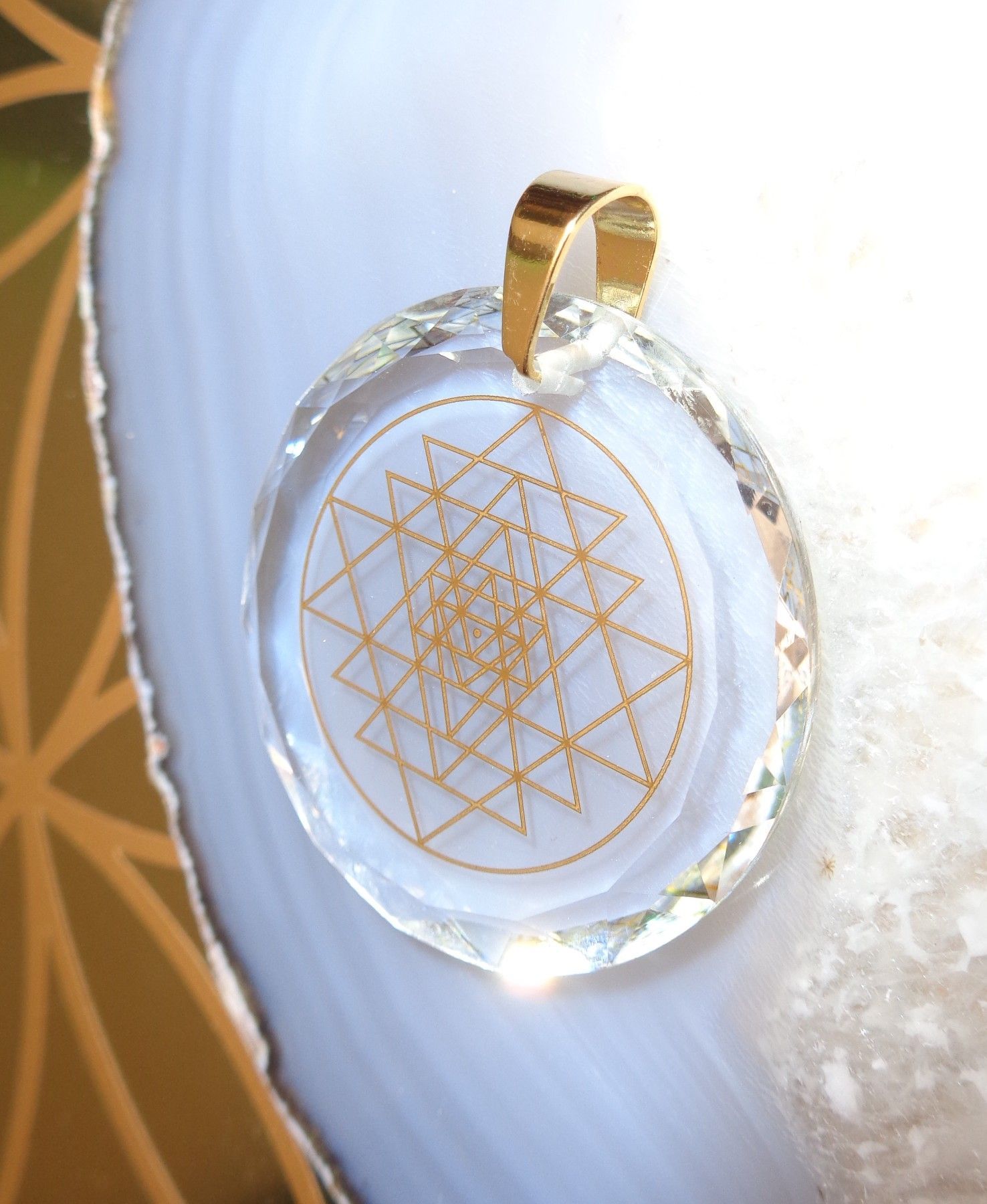 Sri Yantra-Amulett Kristallglas Aura-Schutz Energie-Pendant Harmonie Radionik-Amulett