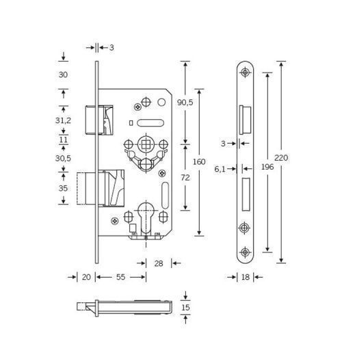 SSF ES 23 Einsteckschloss nach TGL PZW Dornmaß 55 mm Haustürschloss