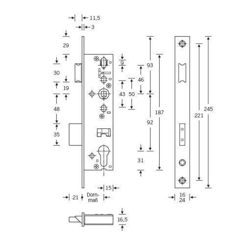 SSF RR 01 Rohrrahmen Einsteckschloss Klasse 3 Schloss PZ 92 mm