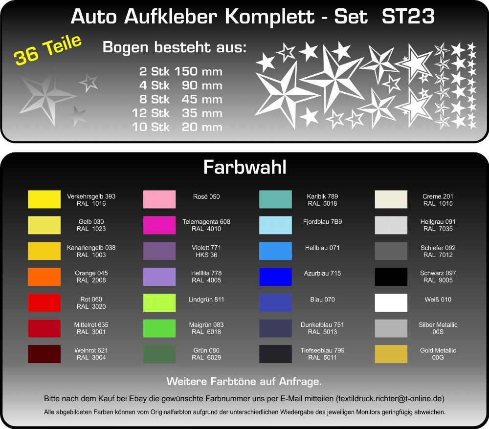 ST23 Autoaufkleber Cartattoo Sterne Klebefolie viele Farben Komplett Set