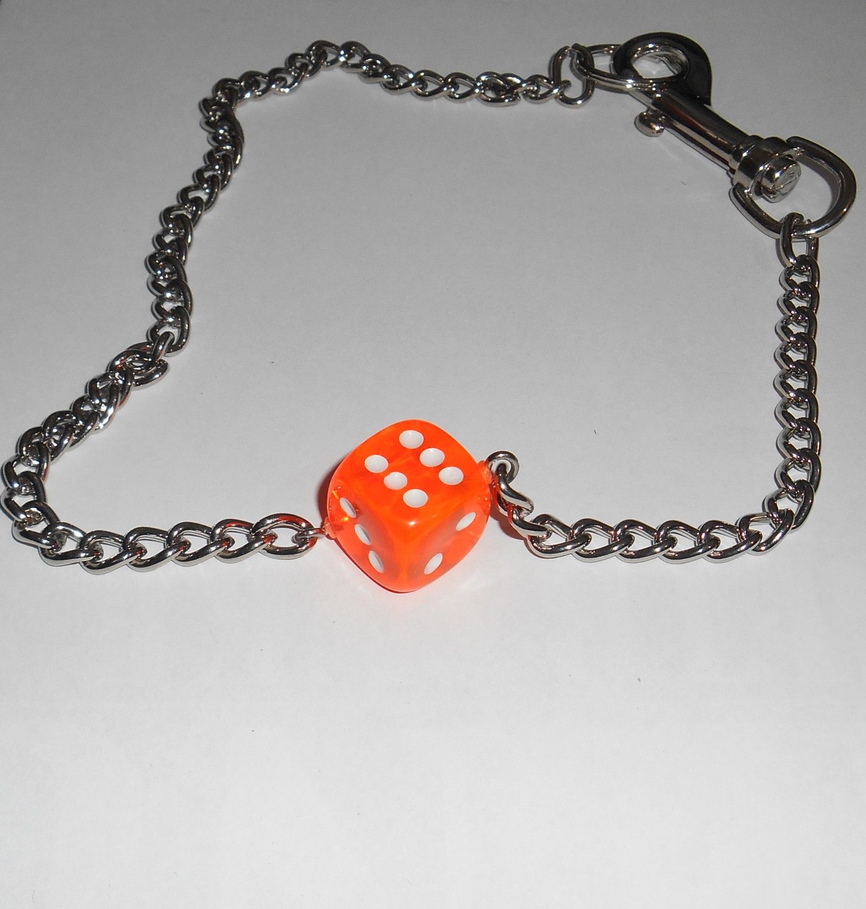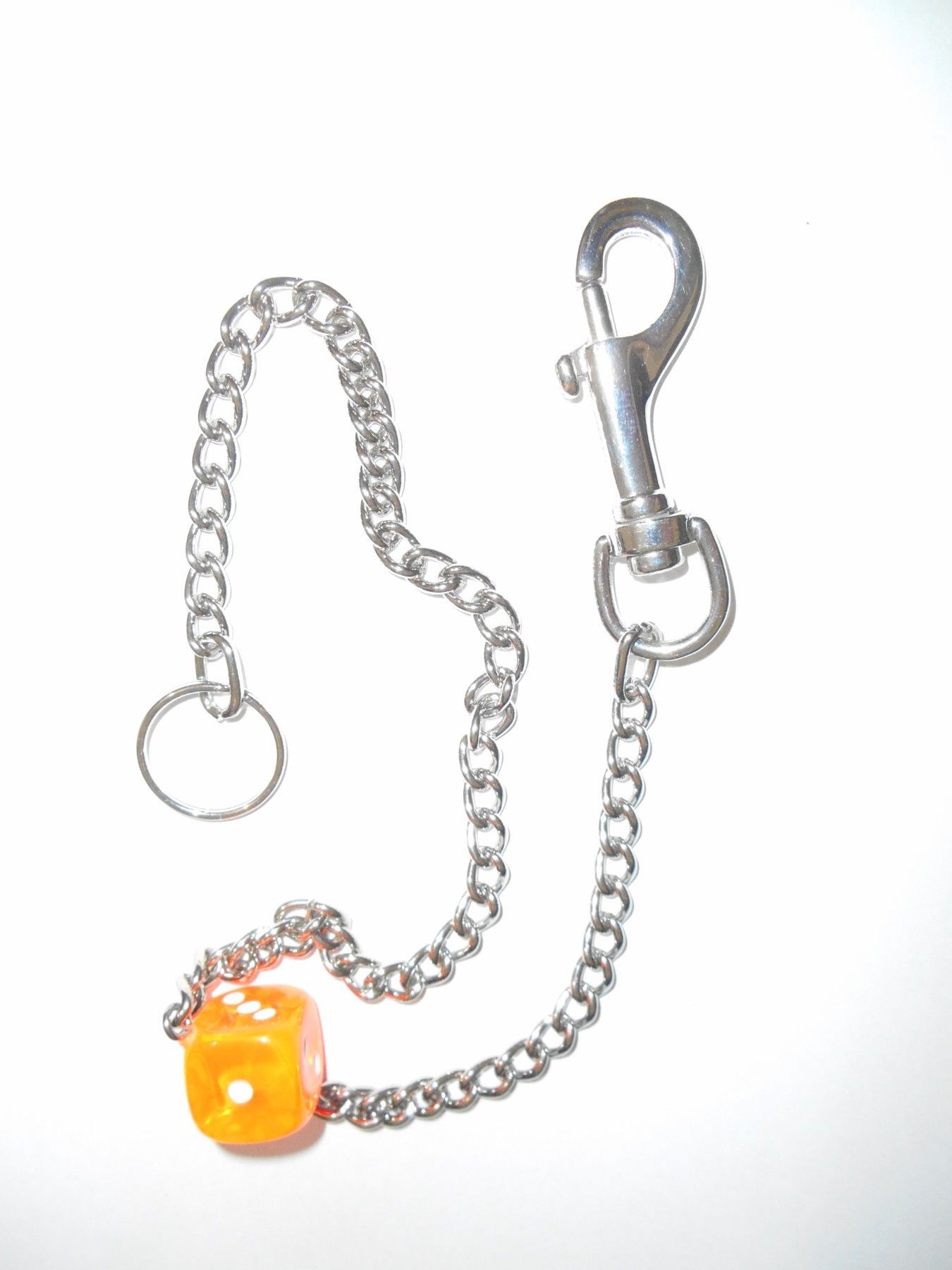 Edelstahl Schlüsselkette mit Acryl-Würfel – Handarbeit St. Pauli Massive Hosenkette/Schlüsselanhänger aus rostfreiem Edelstahl. Handgefertigt von Götz Barner in Hamburg. Ein markantes Accessoire für Jeans oder Schlüsselbund. Material: Edelstahl & Acryl Länge: 47 cm Gewicht: 75 g Würfel: 2 cm (Orange, Klar, Grün-transp., Orange-transp.) Zustand: Neu