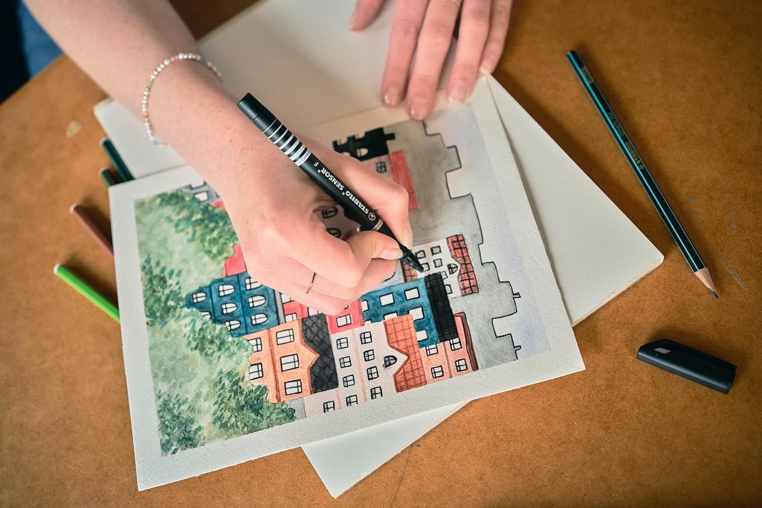 Stabilo - Fineliner mit gefederter Spitze - SENSOR F - fein - 4er Pack - schwarz, bla