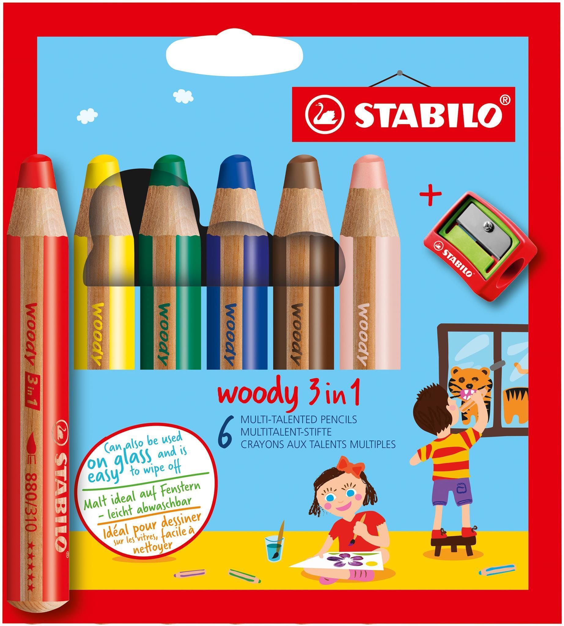 Stabilo woody 3 in 1, 6er Etui mit Spitzer