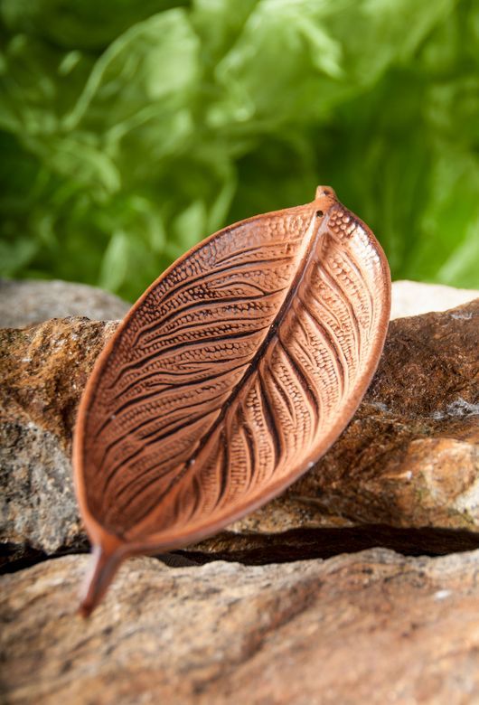 Stäbchenhalter Blatt, braun, Weißmetall, B:9 cm, L: 25 cm, KH-221-BR