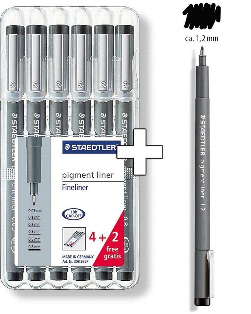 Staedtler 308 SB6P Pigment Liner, 4 Stück und 2 Stück Gratis, in Box