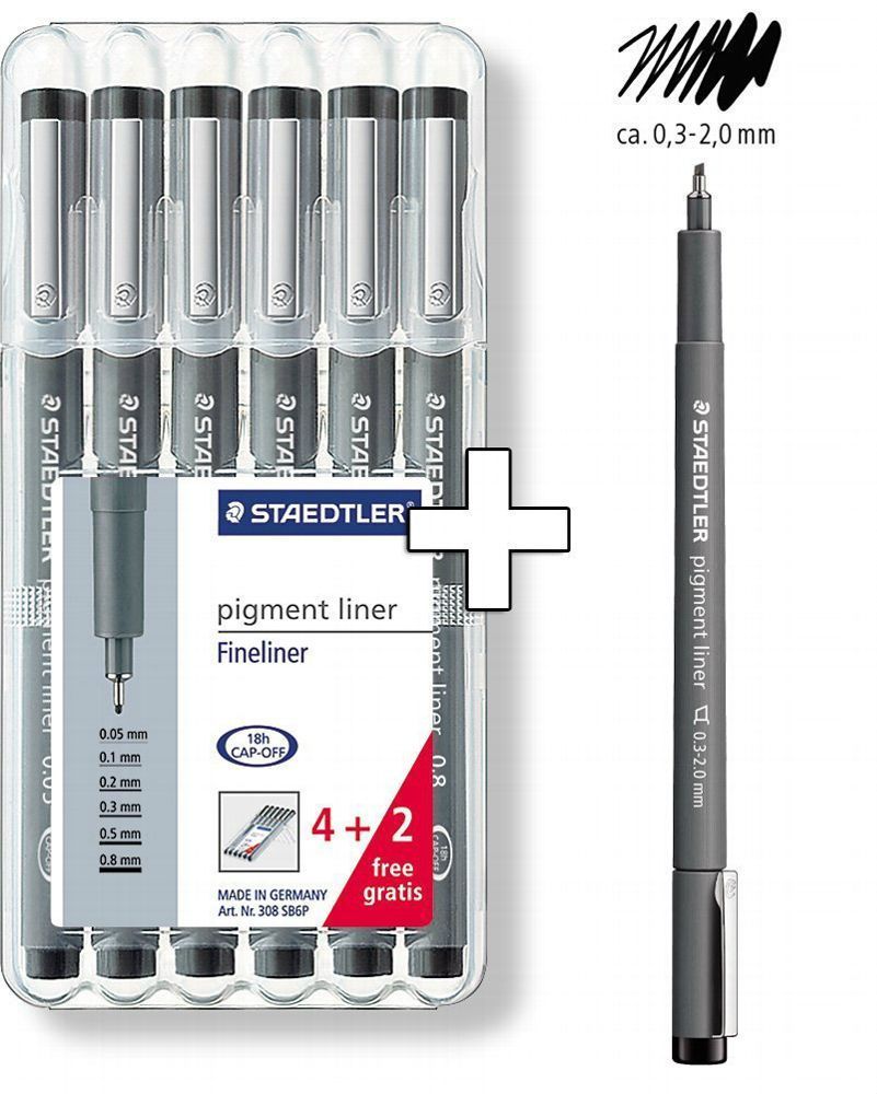 Staedtler 308 SB6P Pigment Liner, 4 Stück und 2 Stück Gratis, in Box