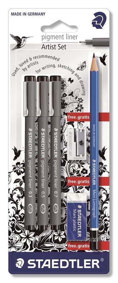 Staedtler® 308 SBK3P Feinschreiber pigment liner - Blisterkarte mit 3 Stärken