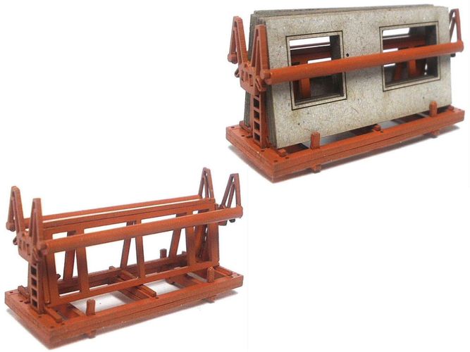 Die Bezahlung ist nur mit PayPal oder Barzahlung bei Abholung möglich, keine Banküberweisung !!! LaserFirstCut Maßstab 1:160 neuwertiges Modell: Stafette, Transportgestell, Betonplatten füt WBS 70 stehend Einsetzbar auf der Modellbahn ab Epoche IV Das Modell wurde aus einem Kleinserien- Lasercut- Ba