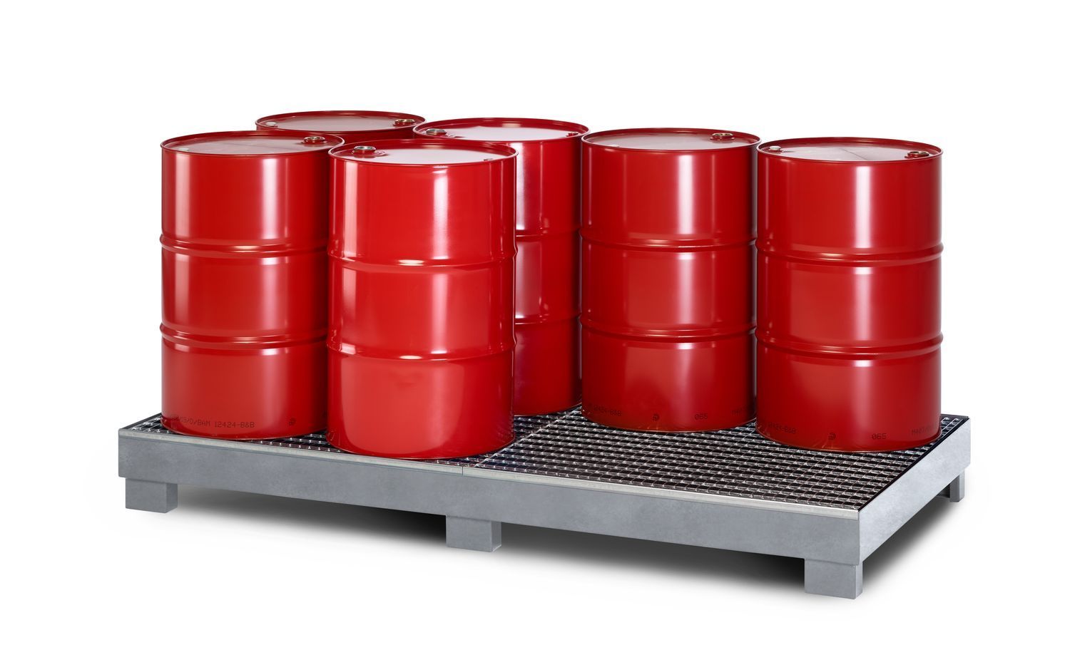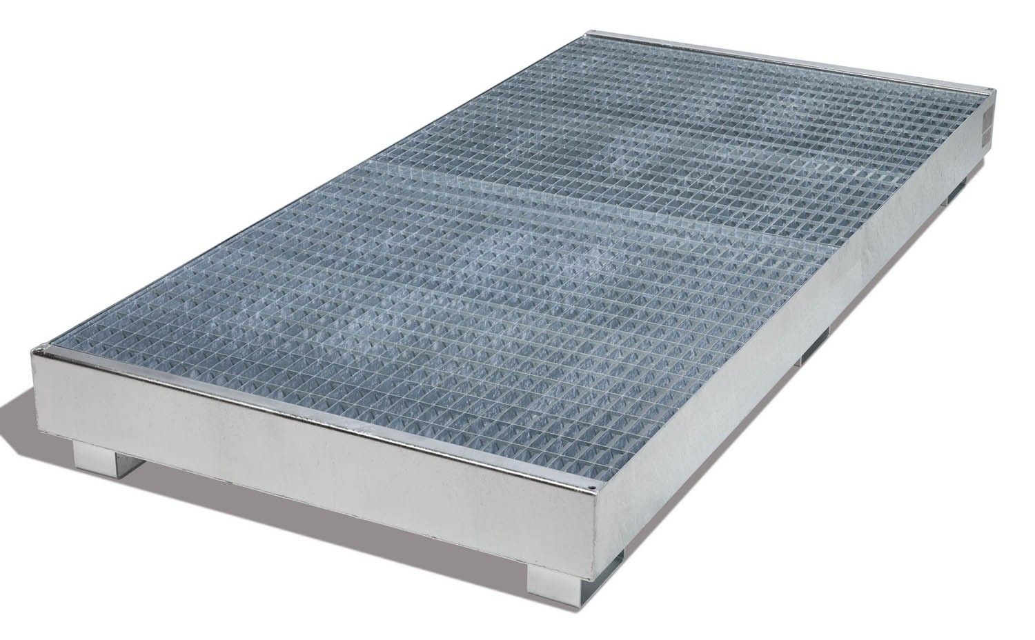 Stahl Auffangwanne feuerverzinkt mit Gitterrost Volumen 450l für 8x200l Fass