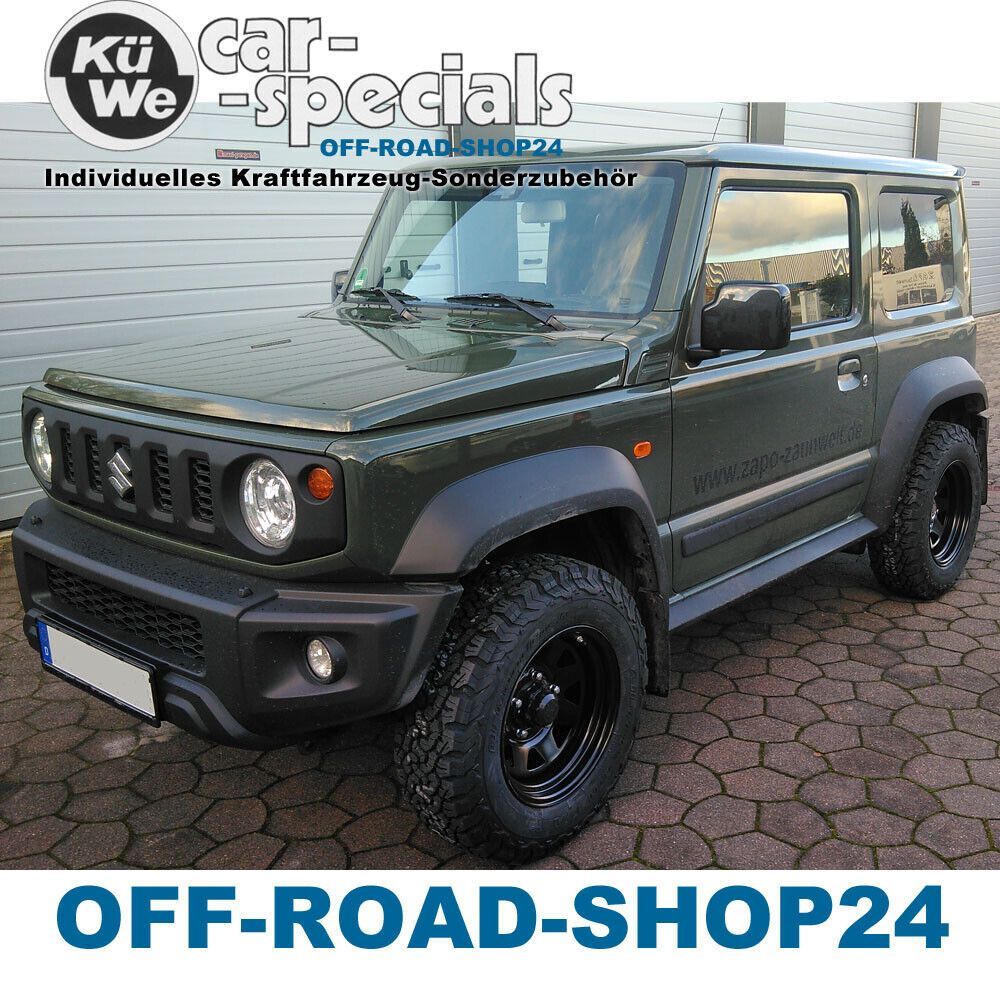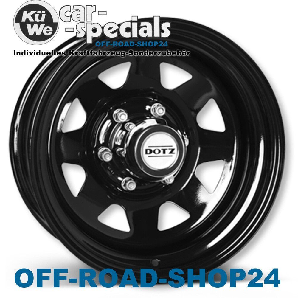 OFF-ROAD-SHOP24 Ideen rund um`s Auto... ...anders als alle Anderen... STAHL-Felgen 7x15 ET-12 DOTZ DAKAR TIEFBETT 110 mm Dark Schwarz glänzend - SUZUKI JIMNY II MODELL 2019 + 2021 Typ: GJ - HJ mit ABE 5x TIEFBETT FELGEN - 5x AUSWUCHTPERLEN - 5x REIFENDRUCKSENSOREN - 3x EDELSTAHL NABENKAPPEN Verwendu